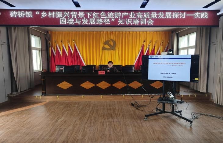 乡村振兴特派团参加“助力光山乡村振兴”砖桥镇相关活动。邝金丽教授作为乡村干部特色经济发展宣讲组主讲,对砖桥镇乡村干部开展“乡村振兴背景下红色旅游产业高质量发展探讨”知识培训。砖桥镇政府相关人员及各村支部书记参加了培训。