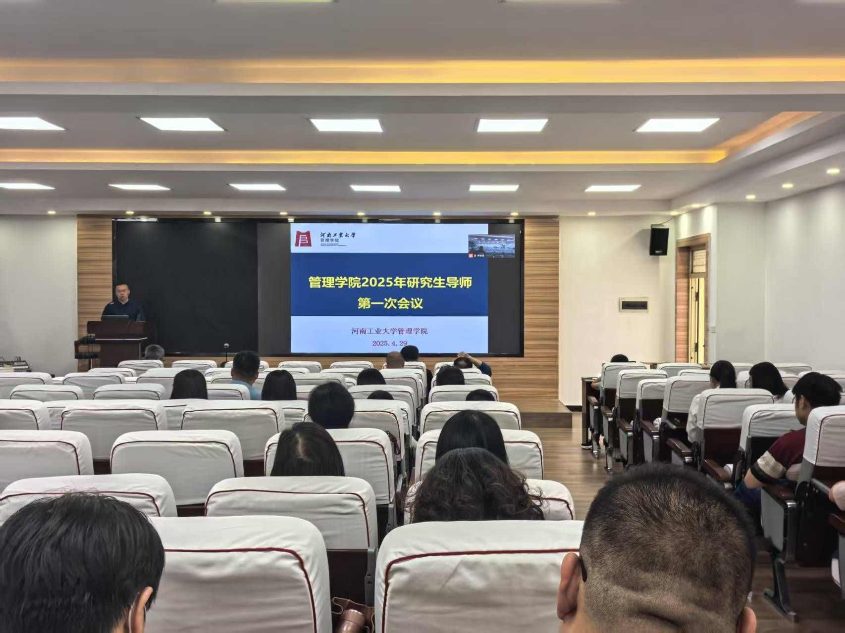 于2025年4月29日下午14:30在莲花街校区3号楼3428报告厅召开了2025年度研究生导师第一次工作会议。会议由副院长穆庆榜主持,全体导师、研究生办公室工作人员及院领导参加会议。