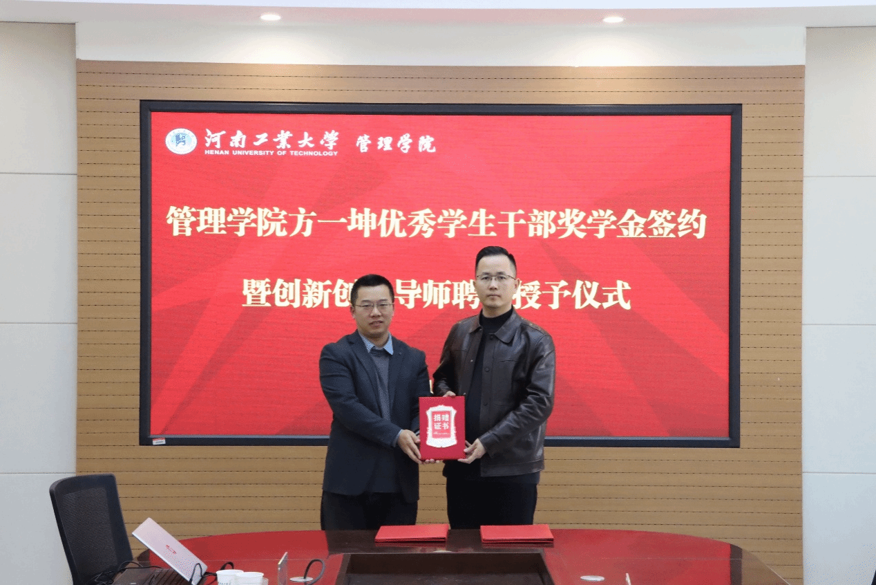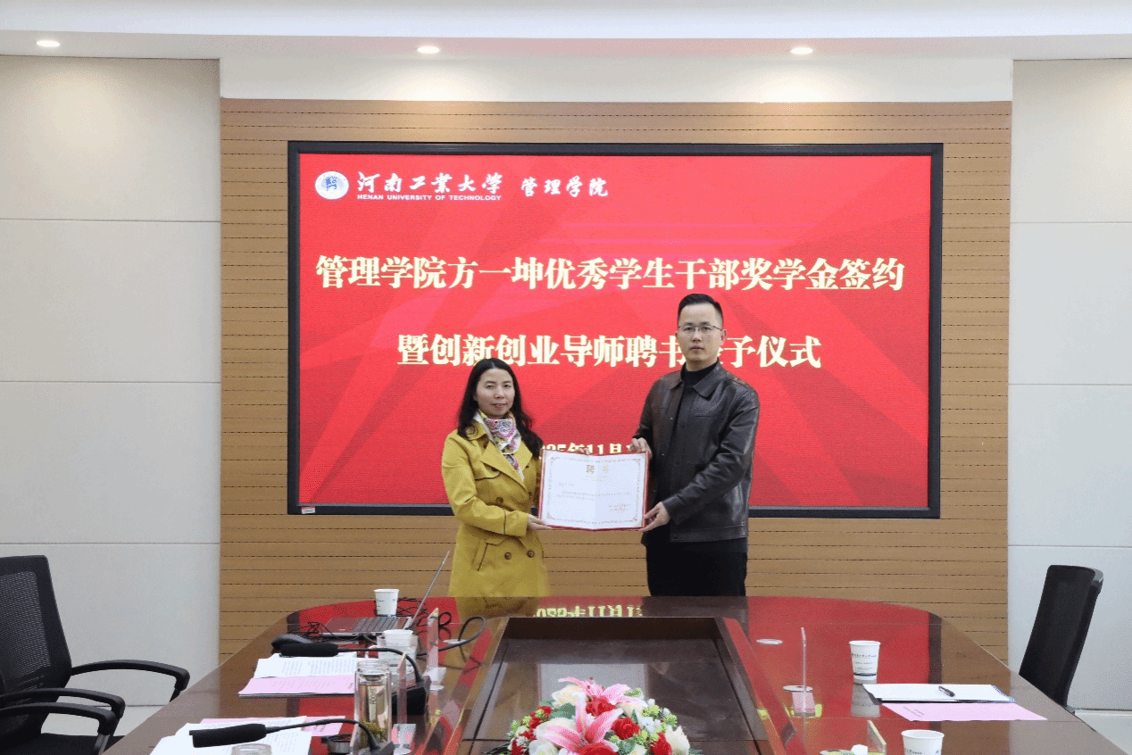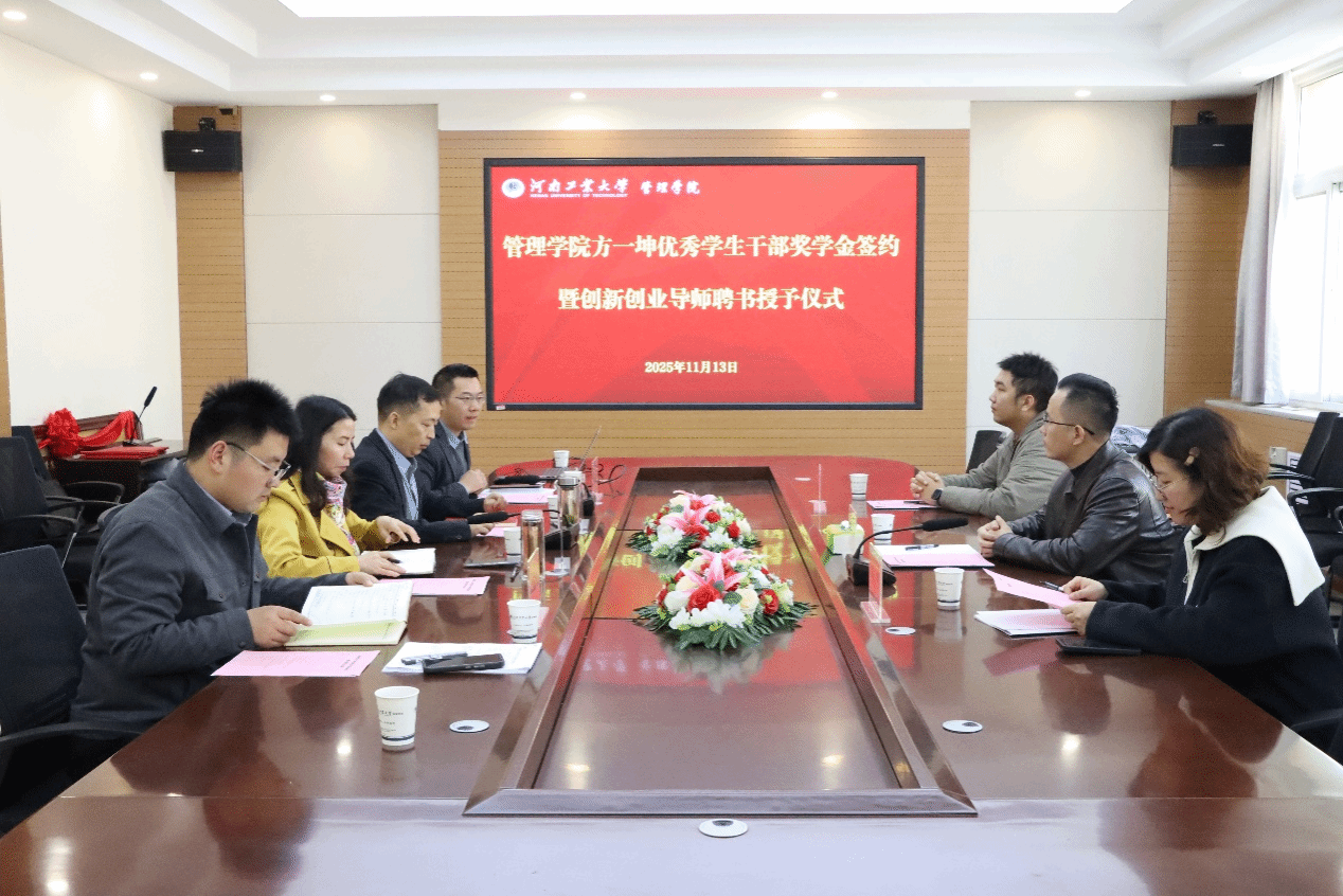 “方一坤优秀学生干部奖学金”签约暨创新创业导师聘任仪式在博识楼3558会议室举行。方一坤集团总裁宋东方、人力资源部行政经理郑雪、新媒体运营部经理郭子恺,亚洲无码