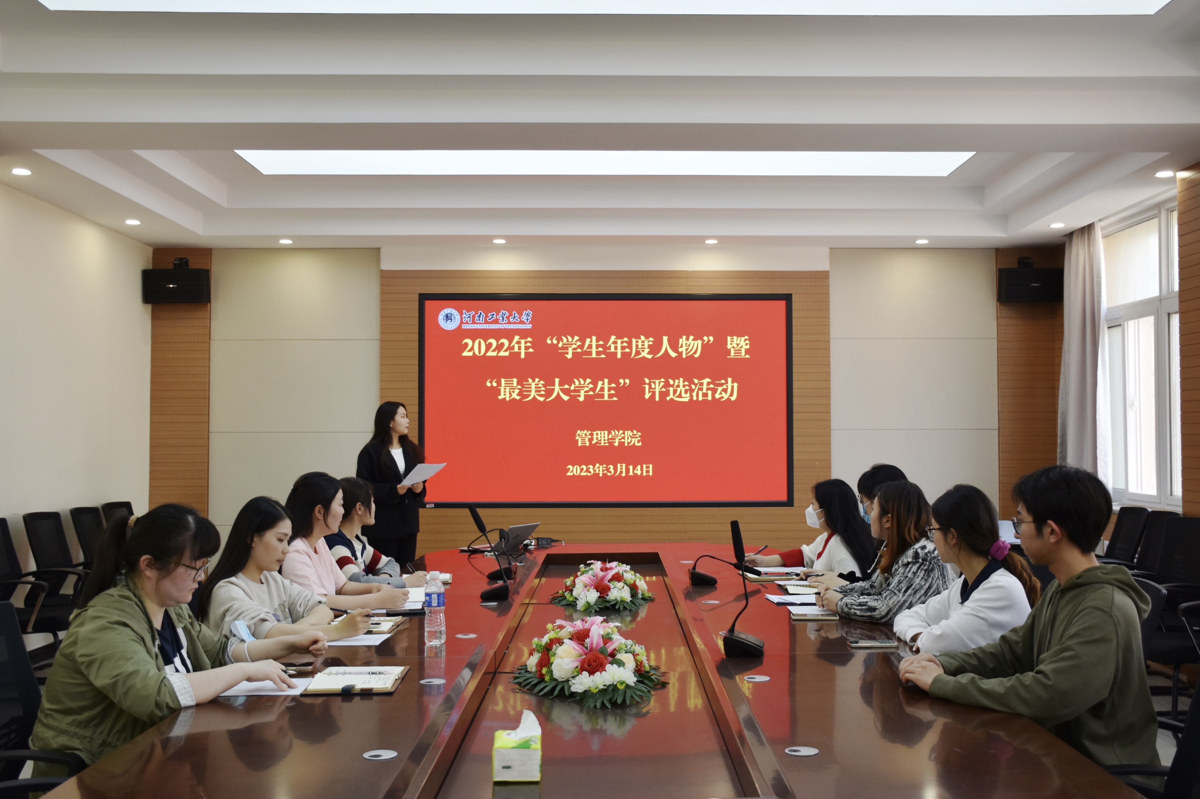 在3558会议室举办2022年“学生年度人物”暨“最美大学生”推荐评选活动。学院学工办主任王风云、团委副书记郑媛媛、辅导员方园、肖雪川,兼职研究生辅导员和全体参评同学们参加了推荐评选活动。