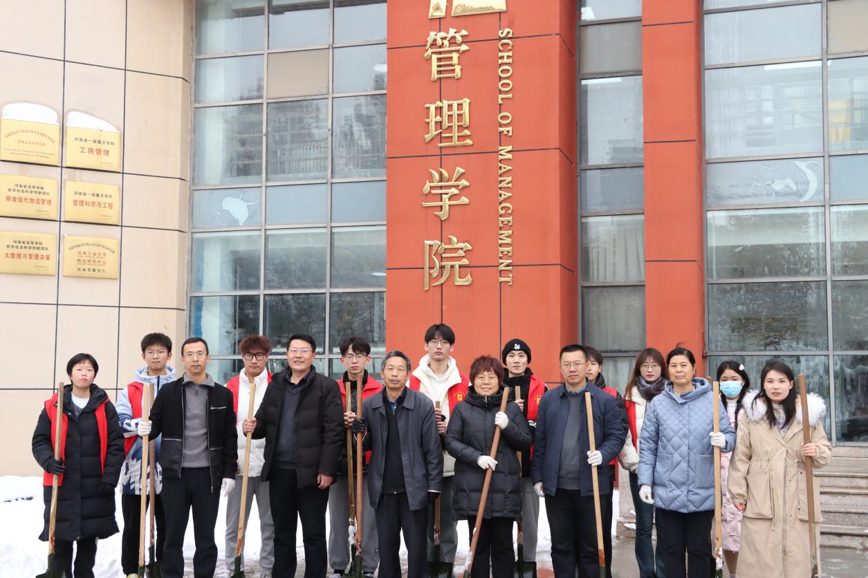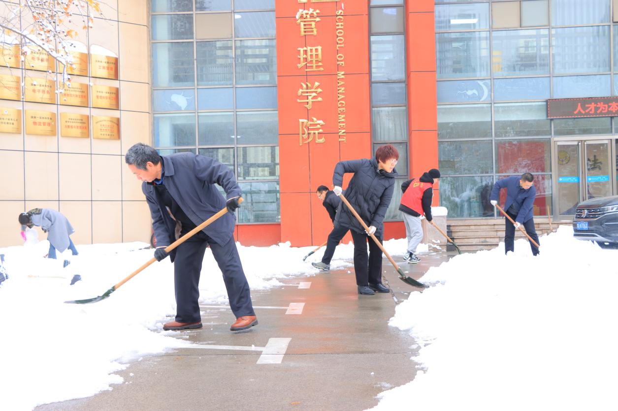 积极响应学校《关于开展冰雪清扫工作的通知》,学院党委书记魏明侠、院长杨艳萍带领学院师生党员在3号楼及其周边道路开展清雪活动,保障师生安全出行。