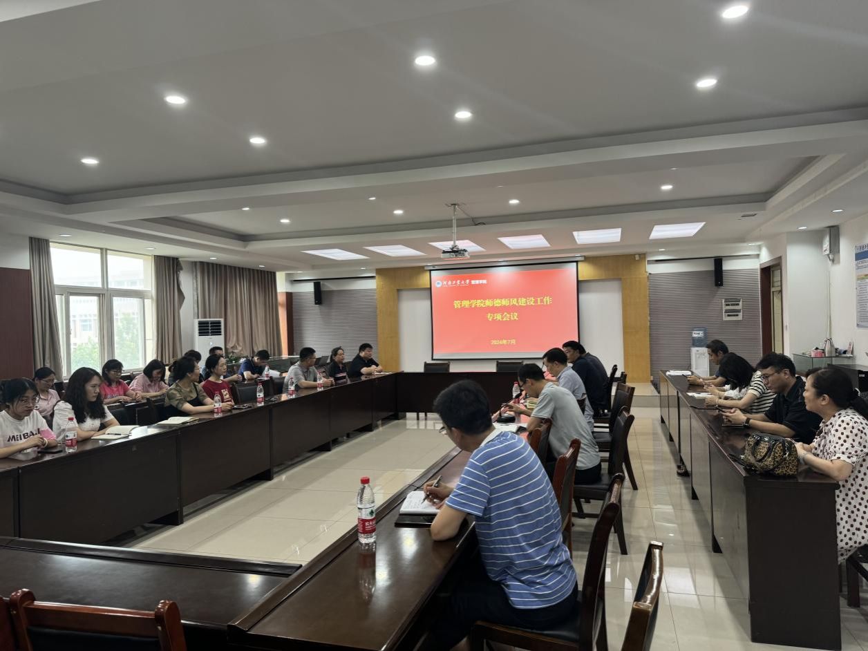 师德师风建设工作责任体系及落实机制办法(试行)》等文件,强调了本次师德失范问题专项整治工作的重要意义并就学院工作进行了安排部署。