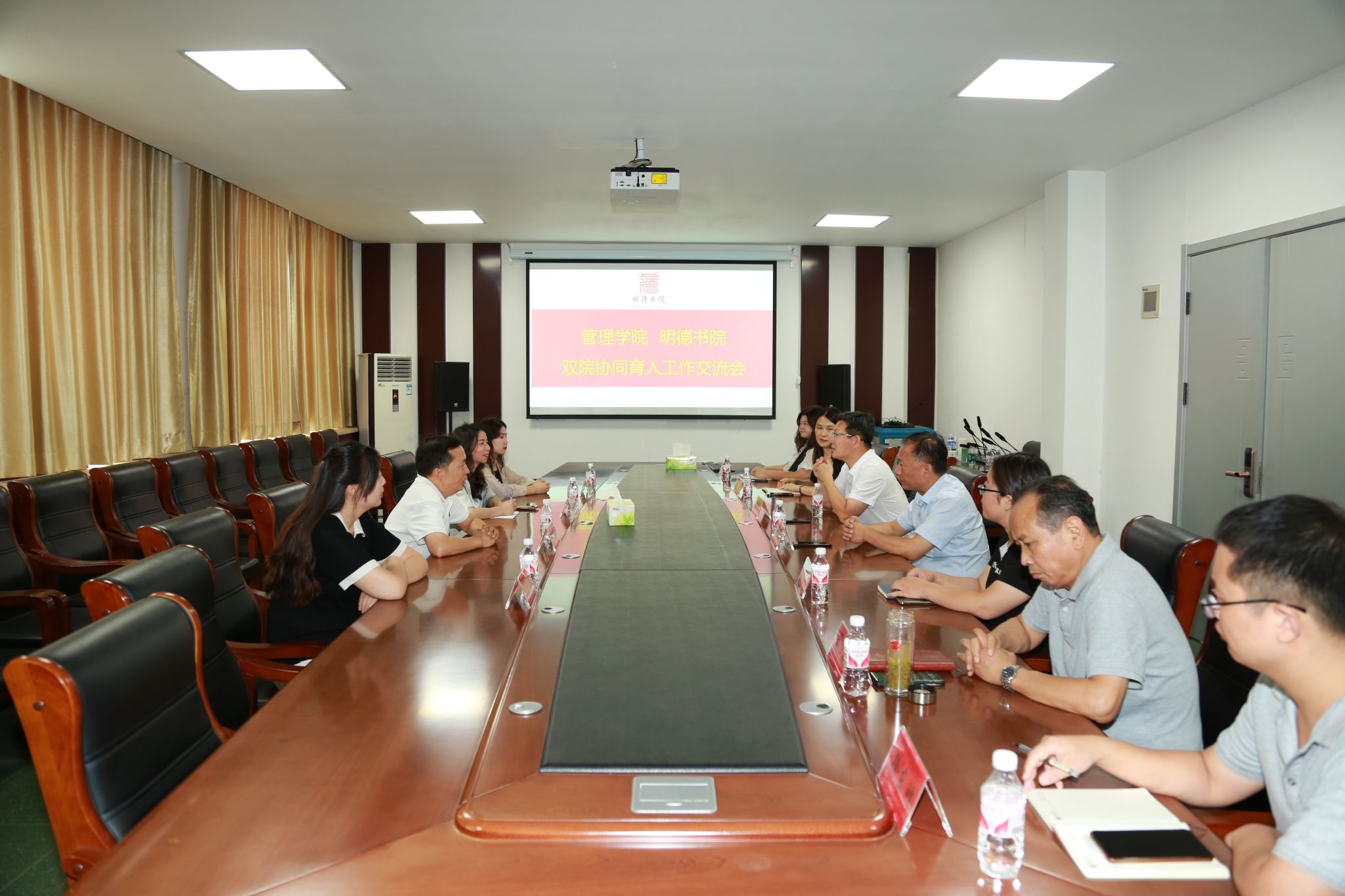 随后,在明德书院办公楼207会议室召开了双院协同育人工作交流会,双方就如何更好地发挥各自优势,共同培养高素质人才进行了深入的探讨。双方一致认为,双院协同育人是一种创新的人才培养模式,要充分整合学院和书院的资源,为学生提供更加全面、个性化的教育服务。通过这次交流会,双方进一步明确了合作的方向和重点,为今后的协同育人工作奠定了良好的基础。