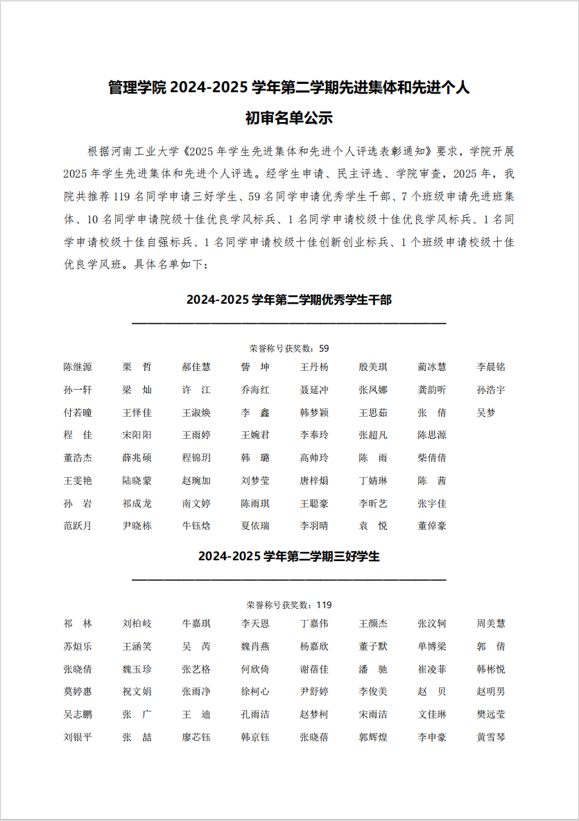 亚洲无码 2024-2025 学年第二学期先进集体和先进个人初审名单公示