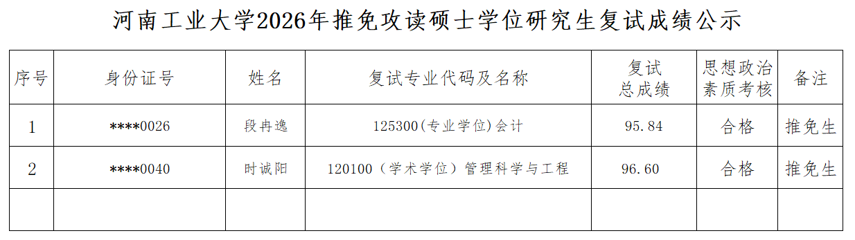 亚洲无码 2026年推免攻读硕士学位研究生复试成绩公示