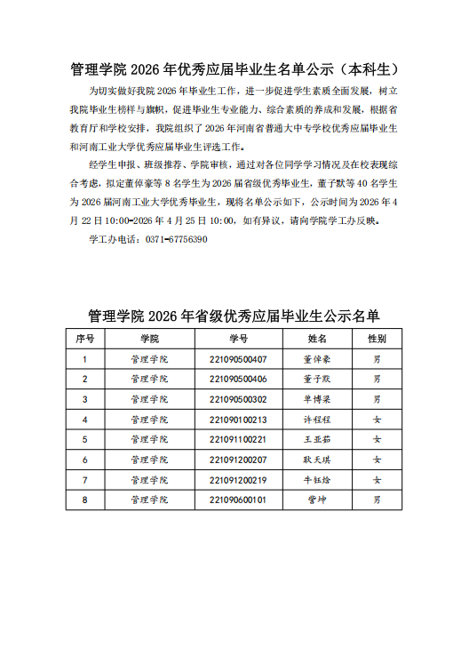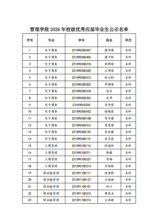 亚洲无码 2026 年优秀应届毕业生名单公示(本科生)