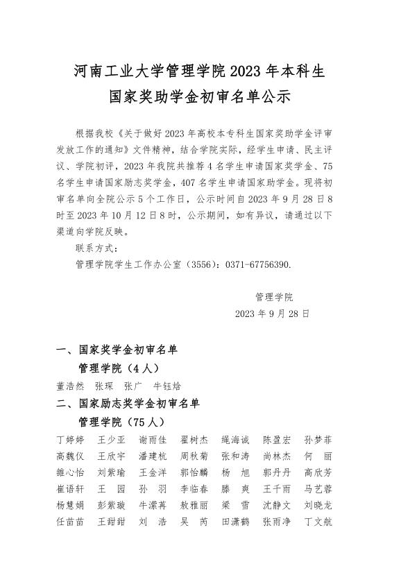 亚洲无码 2023年本科生国家奖助学初审名单公示