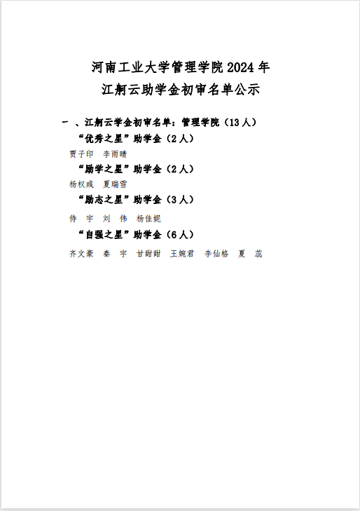 亚洲无码 2024年 江舸云助学金初审名单公示