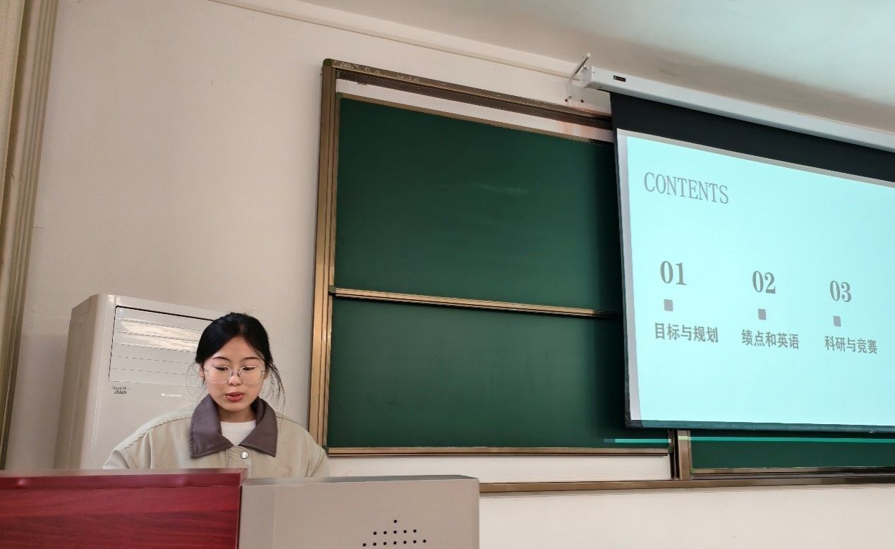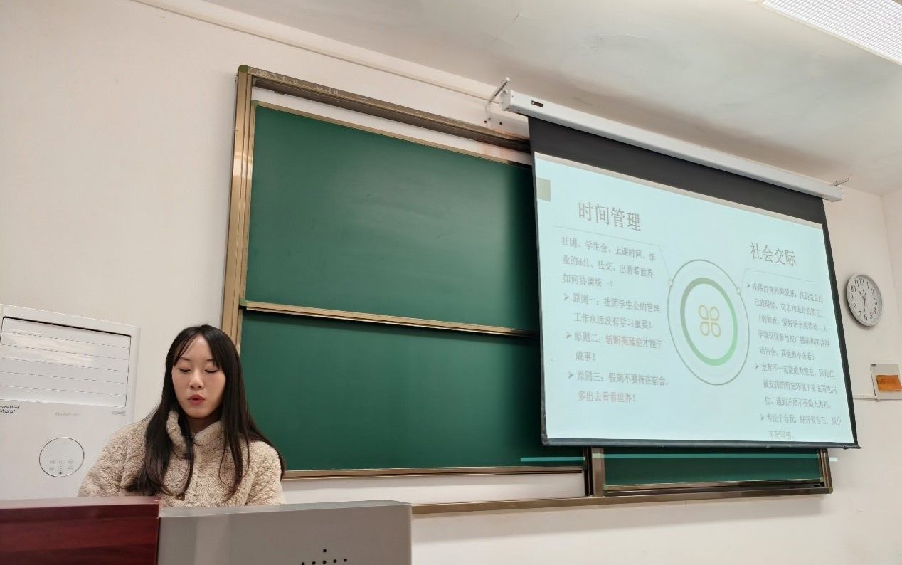 考取深圳大学的韩京钰,围绕如何学习专业课、提升成绩绩点、准备期末课程论文,同时鼓励多读一些专业文献,打好英语课的基础。进一步地,她重点讲解大学生创新创业训练计划项目、挑战杯大学生课外学术竞赛项目等竞赛经历,强调了专业竞赛对于未来就业与考研面试的重要性。