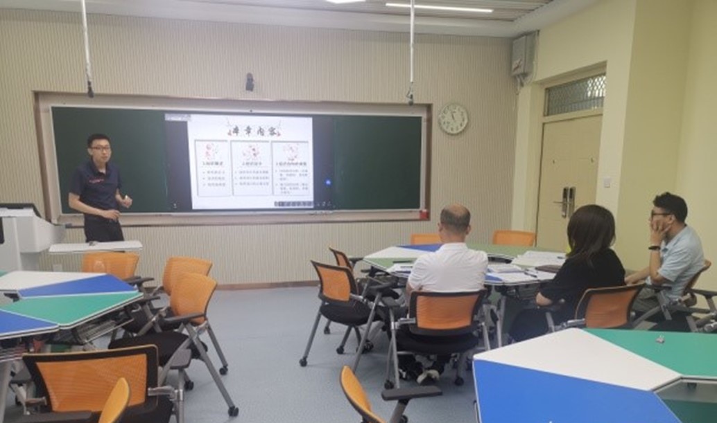 为加强新进教师教学能力培养,提高教学方法和教学手段,促进课堂教学质量提升。7月4日上午,电子商务系在3226智慧教室开展了新进教师课堂授课试讲活动。现场评委由电子商务系书记李朝阳、系主任李永海和系副主任王景玫担任。