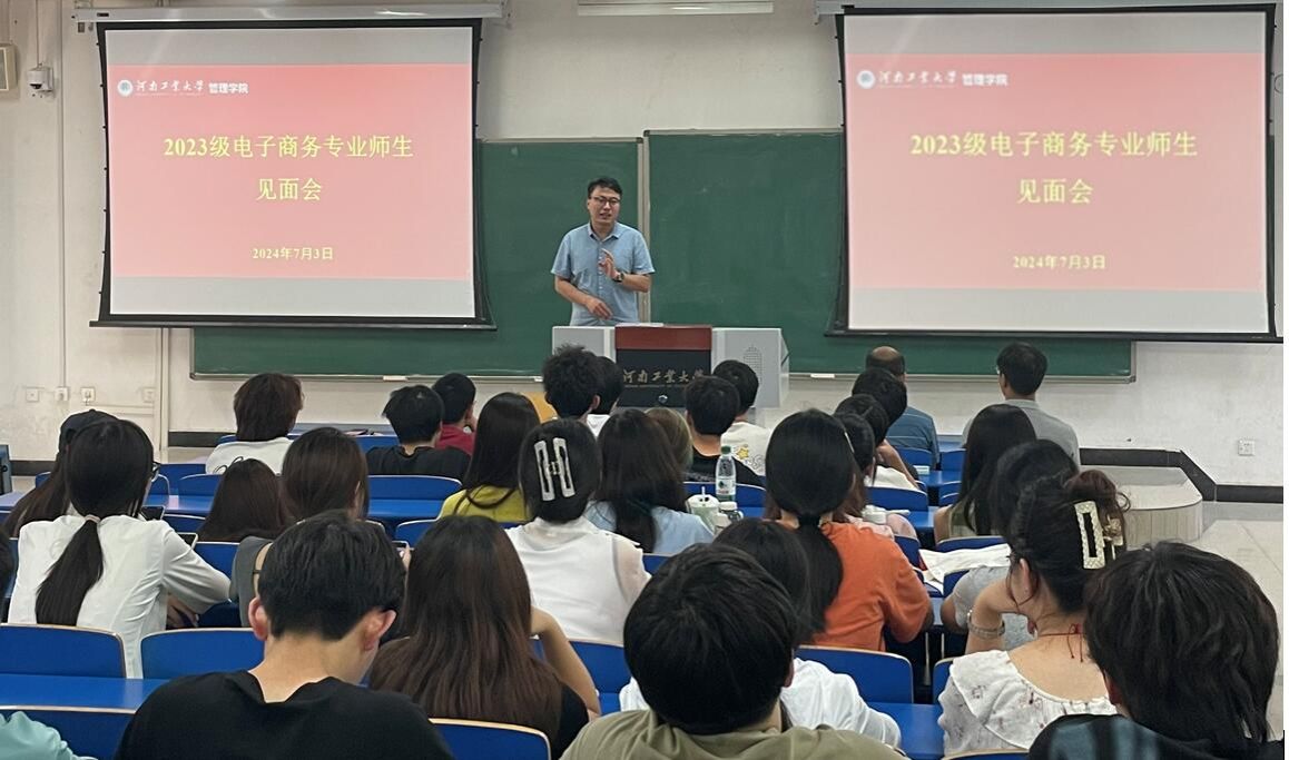 为了促进2023级学生迅速适应新校区环境,积极投入学习与生活,电子商务系于7月4日下午在3224教室举办了一场温馨而充满期待的师生见面会。系主任李永海、支部书记李朝阳、副主任王景玫及班主任导师等参加了本次会议,会议由王景玫主持。