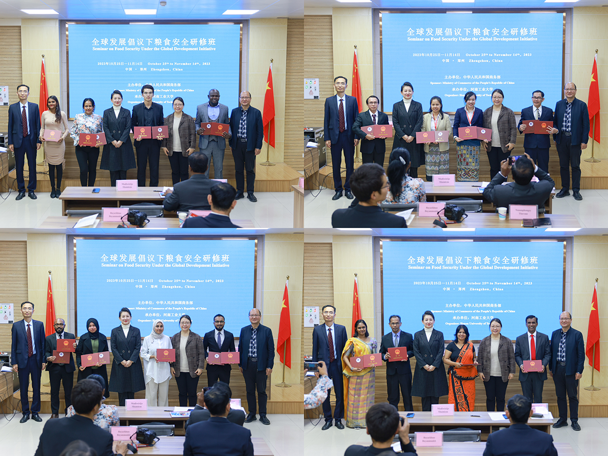 作为中国粮食行业的知名高校,在粮食安全的理论研究、科技应用、农村扶贫等方面的独特优势,将助力中国与其他国家和地区的交流与合作,推动农业技术的跨境传播,粮农技术的跨境推广,携手同行、共同应对全球粮食安全挑战。期待看到各位学员能够利用此次研修班的所学,改善本国粮食安全系统,推动全球粮食安全可持续发展。
