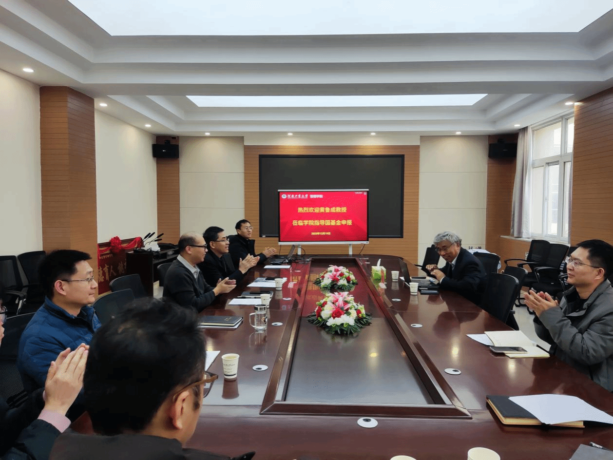 第三期“青蓝学者论坛”暨2026年度国家基金项目申报专家指导会在博识楼3558会议室隆重举行。本次论坛特邀中国企业管理研究会副会长、北京工业大学二级教授黄鲁成担任主讲嘉宾,学院拟申报2026年度国家基金项目的骨干教师参会,学院副院长李朝阳主持会议。