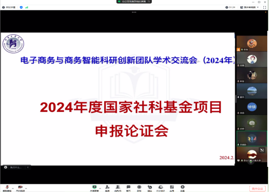为进一步推进有组织科研工作落地,提高国家级社科项目申报质量,2月6日晚,电子商务与商务智能科研创新团队在线上举行了国家社科基金项目选题第三次论证会,团队负责人雷兵教授及9名团队成员参加了此次会议。