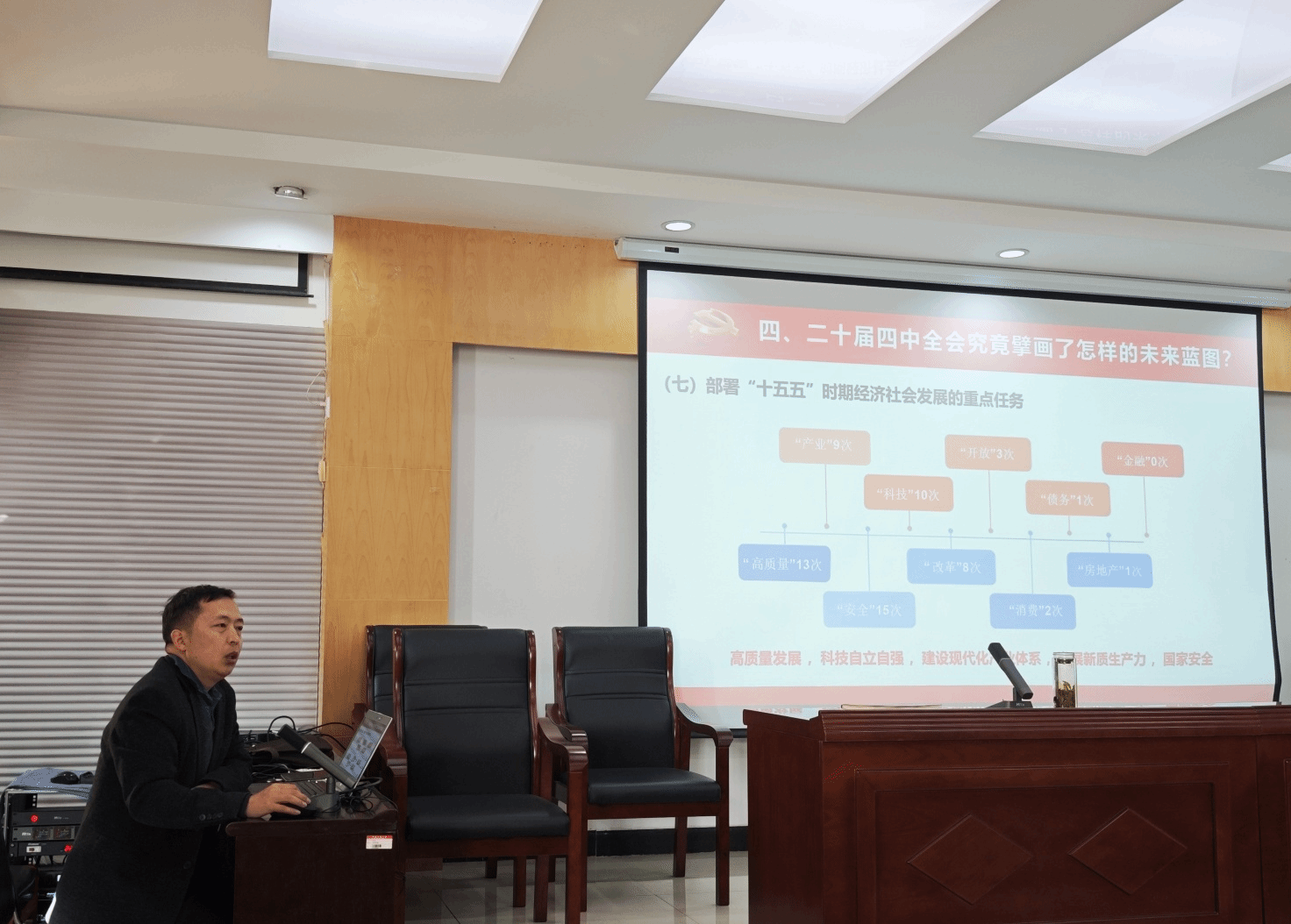 李国仓以“深悟党的二十届四中全会精神实质、勇担‘十五五’奋进新使命”为主题,围绕党的二十届四中全会内涵是什么、总书记为何如此重视“十五五”规划编制、“十四五”期间我们交出了怎样的答卷、党的二十届四中全会究竟擘画了怎样的未来蓝图以及如何贯彻落实党的二十届四中全会精神的实践路径进行了深入解读,并结合学院工作实际,研究部署贯彻落实举措,凝聚起推动学院高质量发展的强大合力。