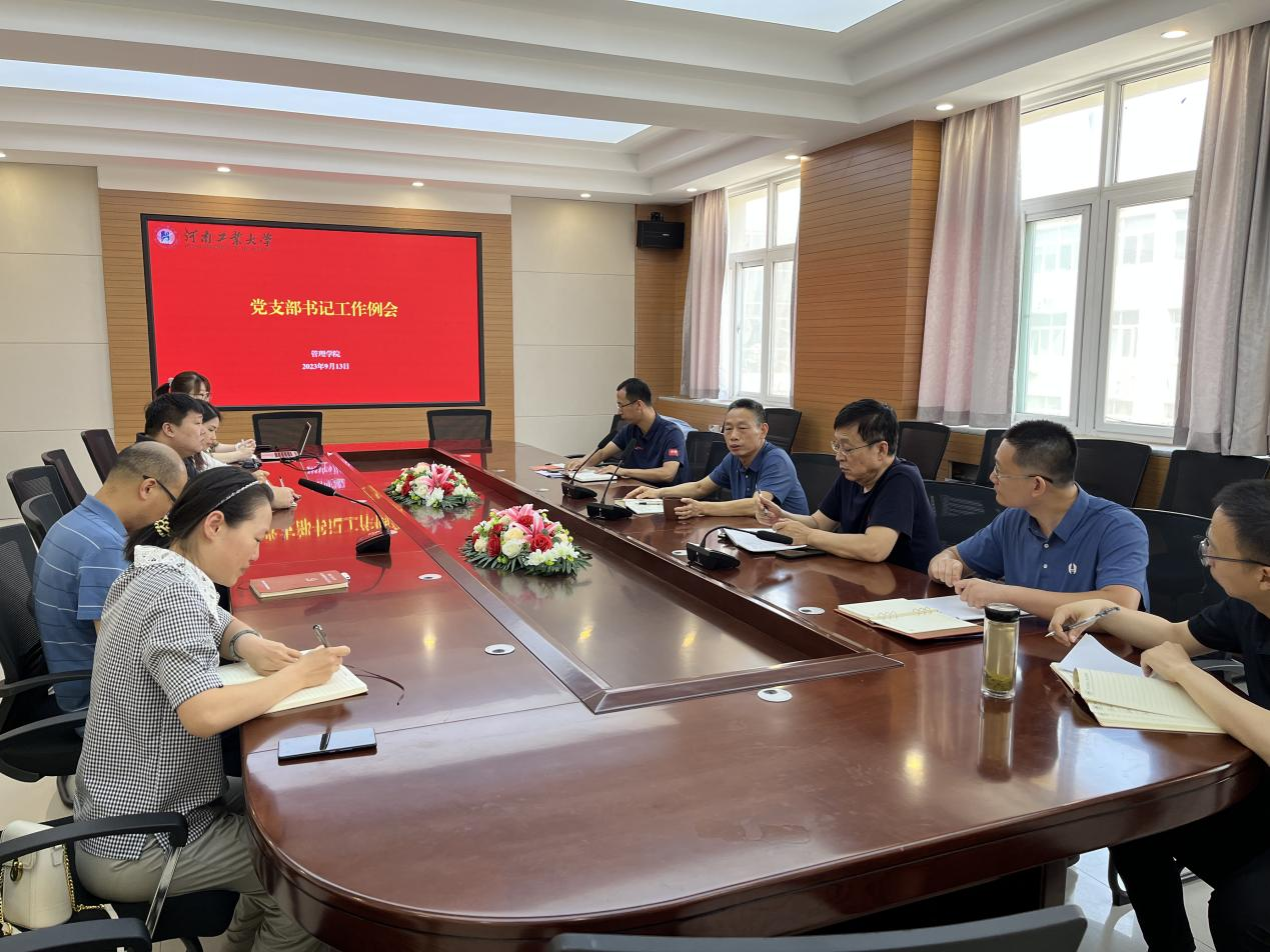 魏涛总结了学院学习贯彻习近平新时代中国特色社会主义思想主题教育的整体情况,传达了学校统战工作联席会议精神,对全体党支部书记进行了党的民族宗教政策培训,并布置相关工作。魏明侠对新学期党支部阵地建设、“三会一课”、党日活动、师德师风以及导师班主任工作作出相关部署并提出明确要求。他强调,支部书记要切实扛起责任,带领全院师生党员在学校、学院各项工作中做模范表率,全力推动学院基层党建工作与业务工作的紧密结合、融合发展。