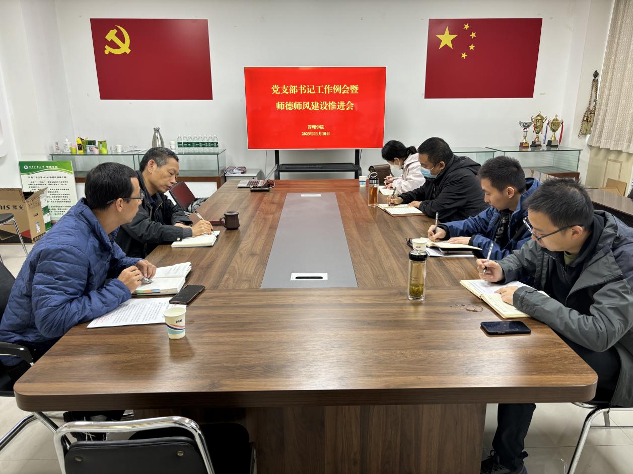 在3557会议室召开教工党支部书记工作例会暨师德师风建设推进会。学院党委书记魏明侠、党委副书记魏涛、全体教工党支部书记参加会议,会议由魏明侠主持。
