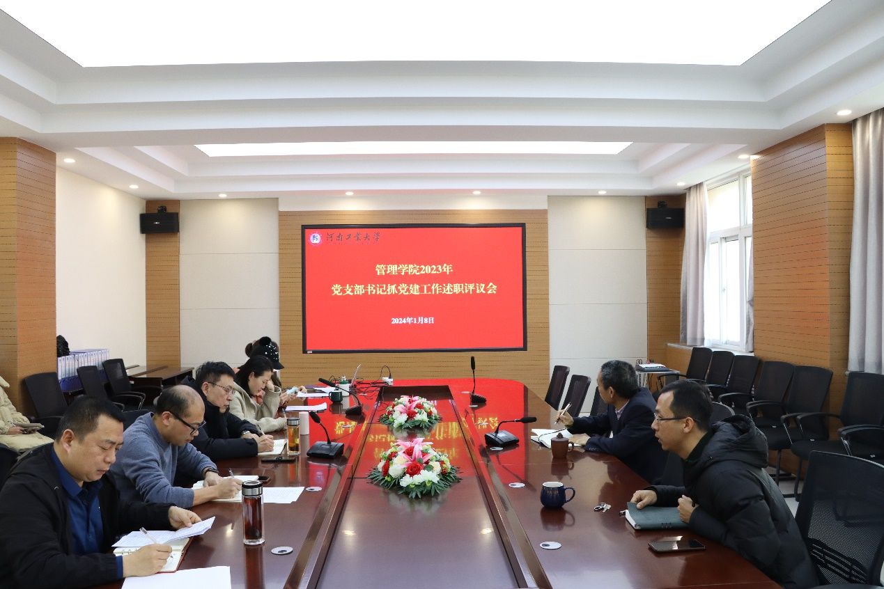在3558会议室召开2023年度党支部书记抓党建工作述职评议会。学院党委书记魏明侠、党委副书记魏涛、各党支部书记以及师生党员代表参会。会议由魏涛主持。
