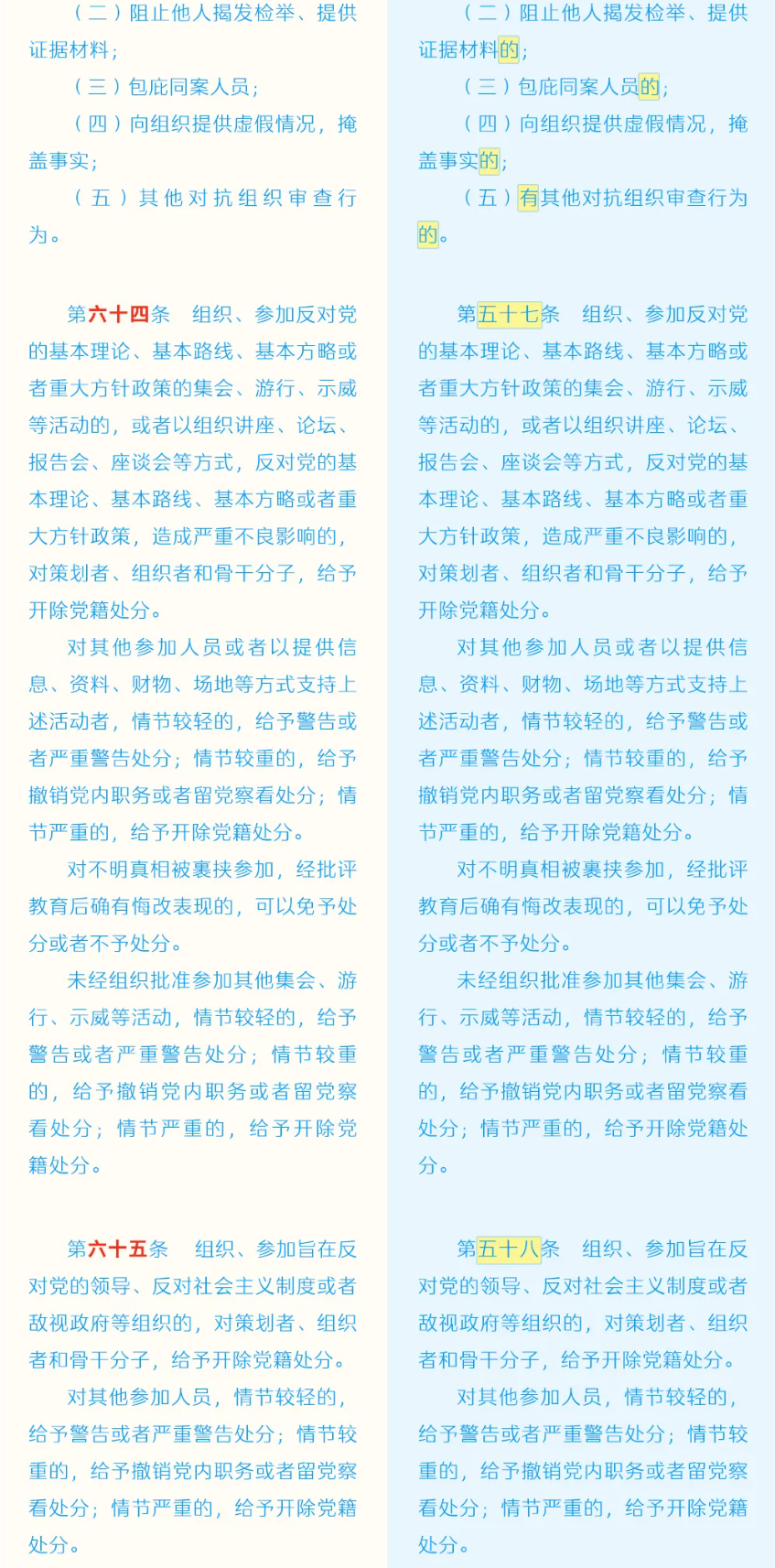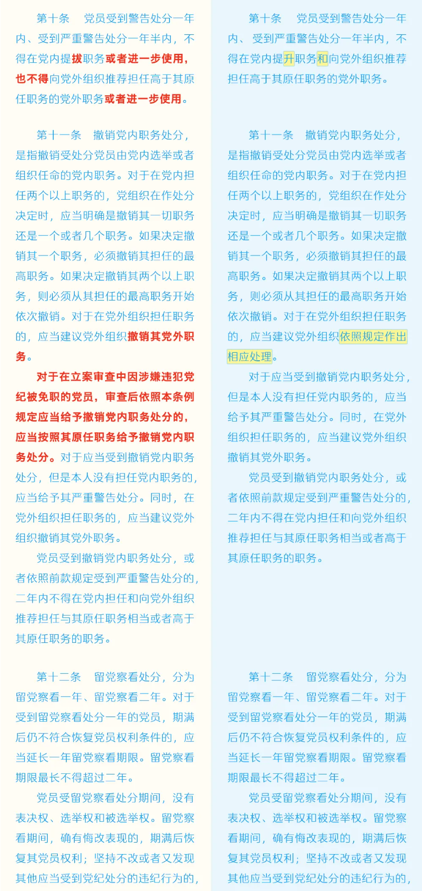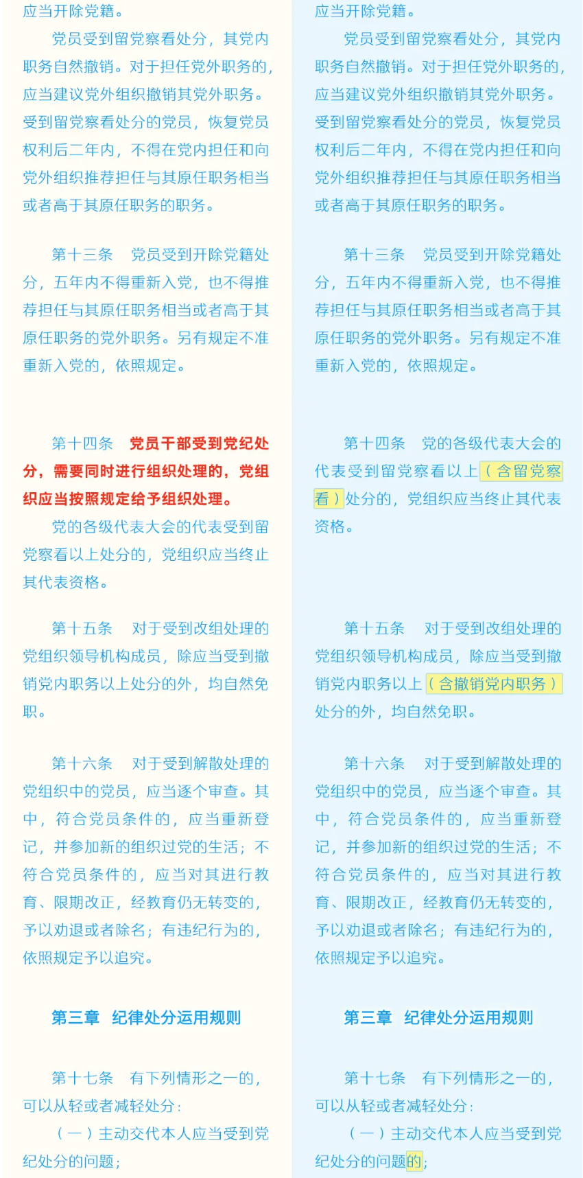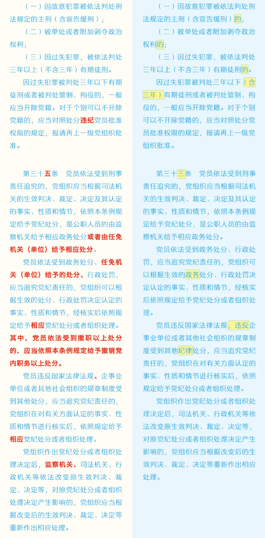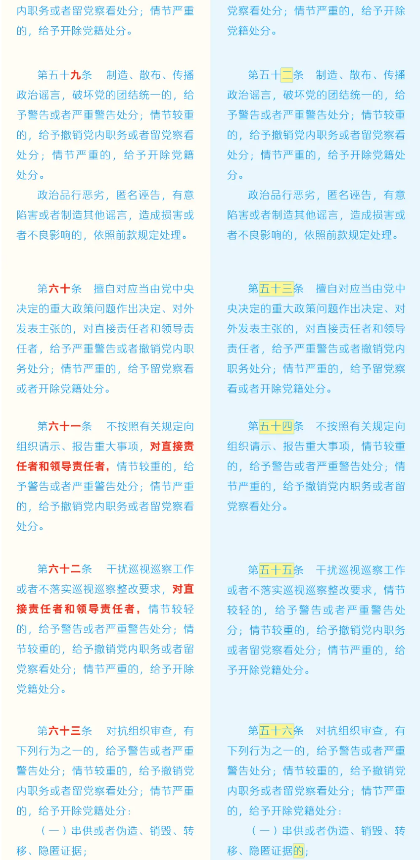 党纪学习教育第5期丨《中国共产党纪律处分条例》修订条文对照表