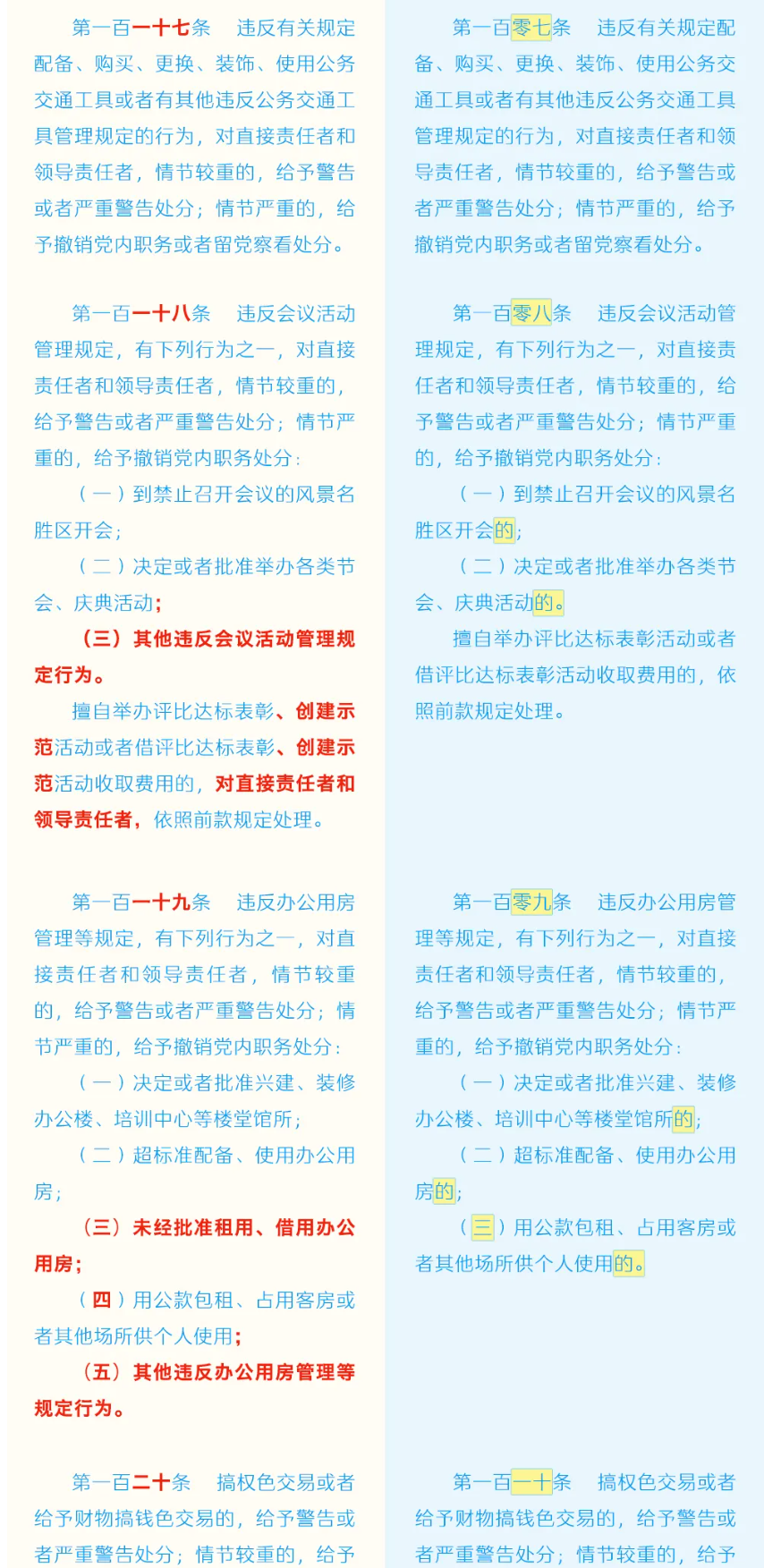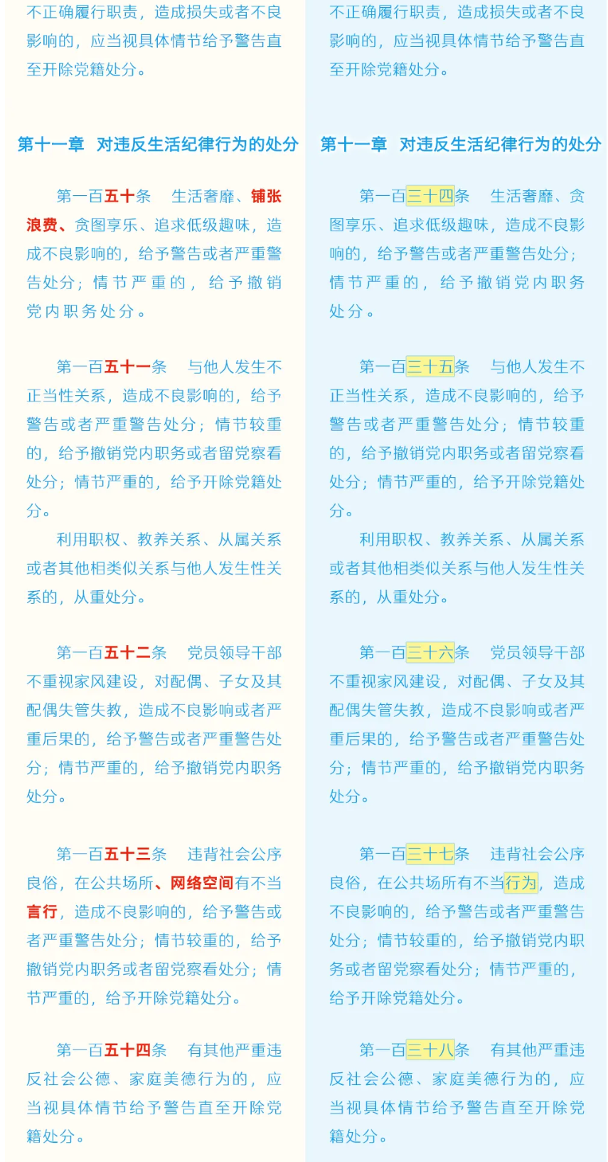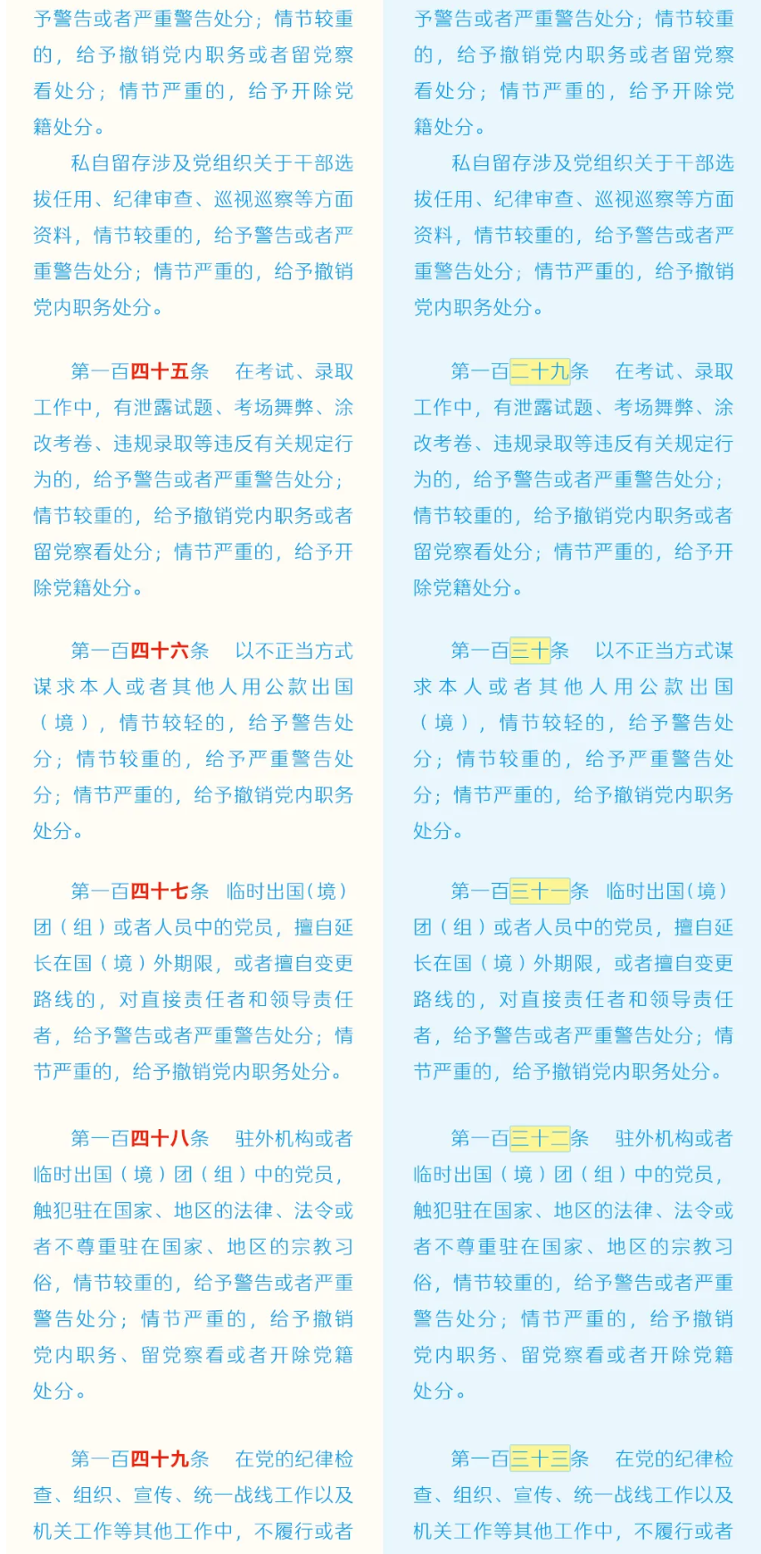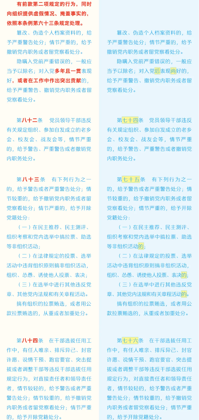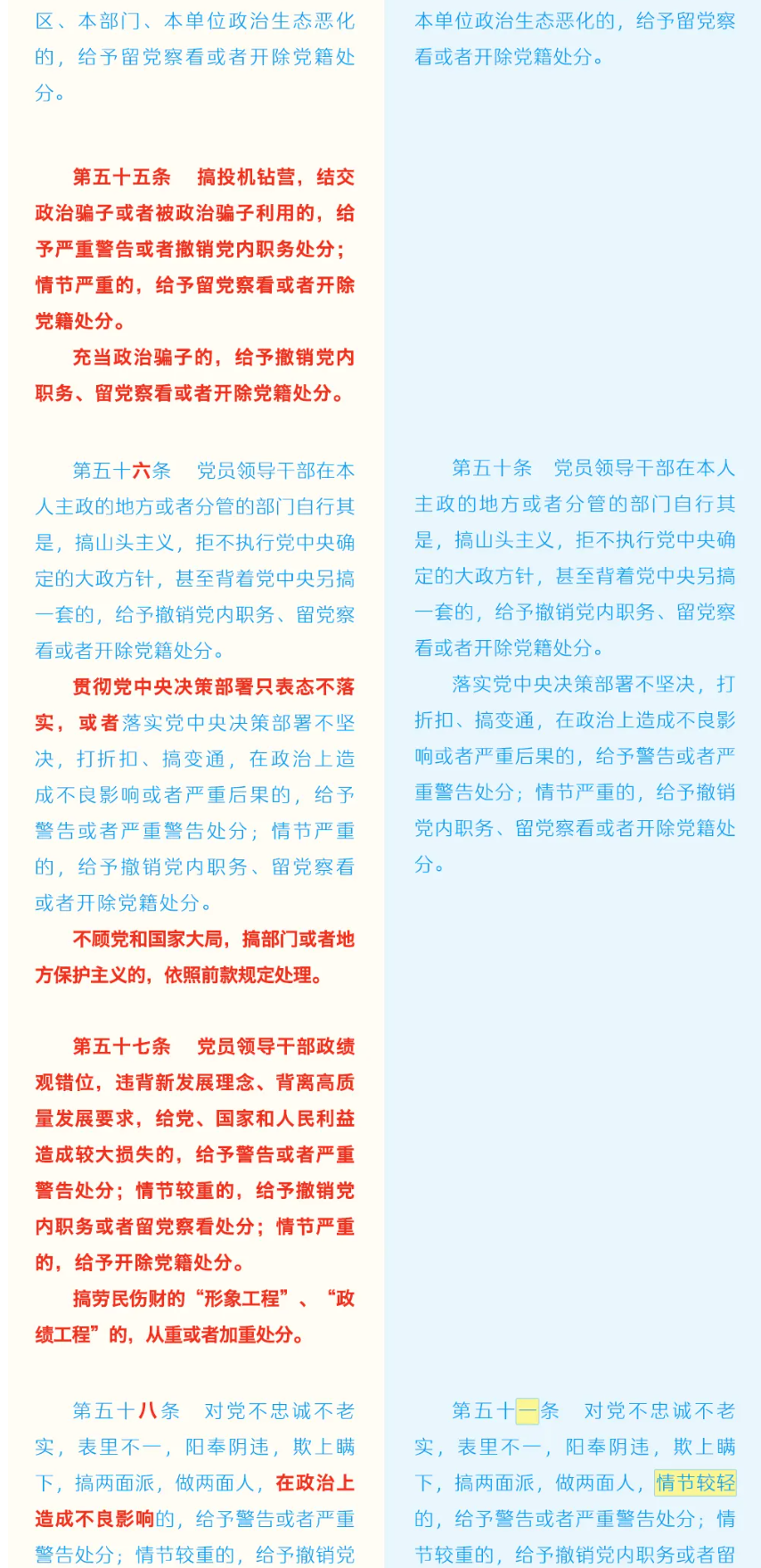 党纪学习教育第5期丨《中国共产党纪律处分条例》修订条文对照表