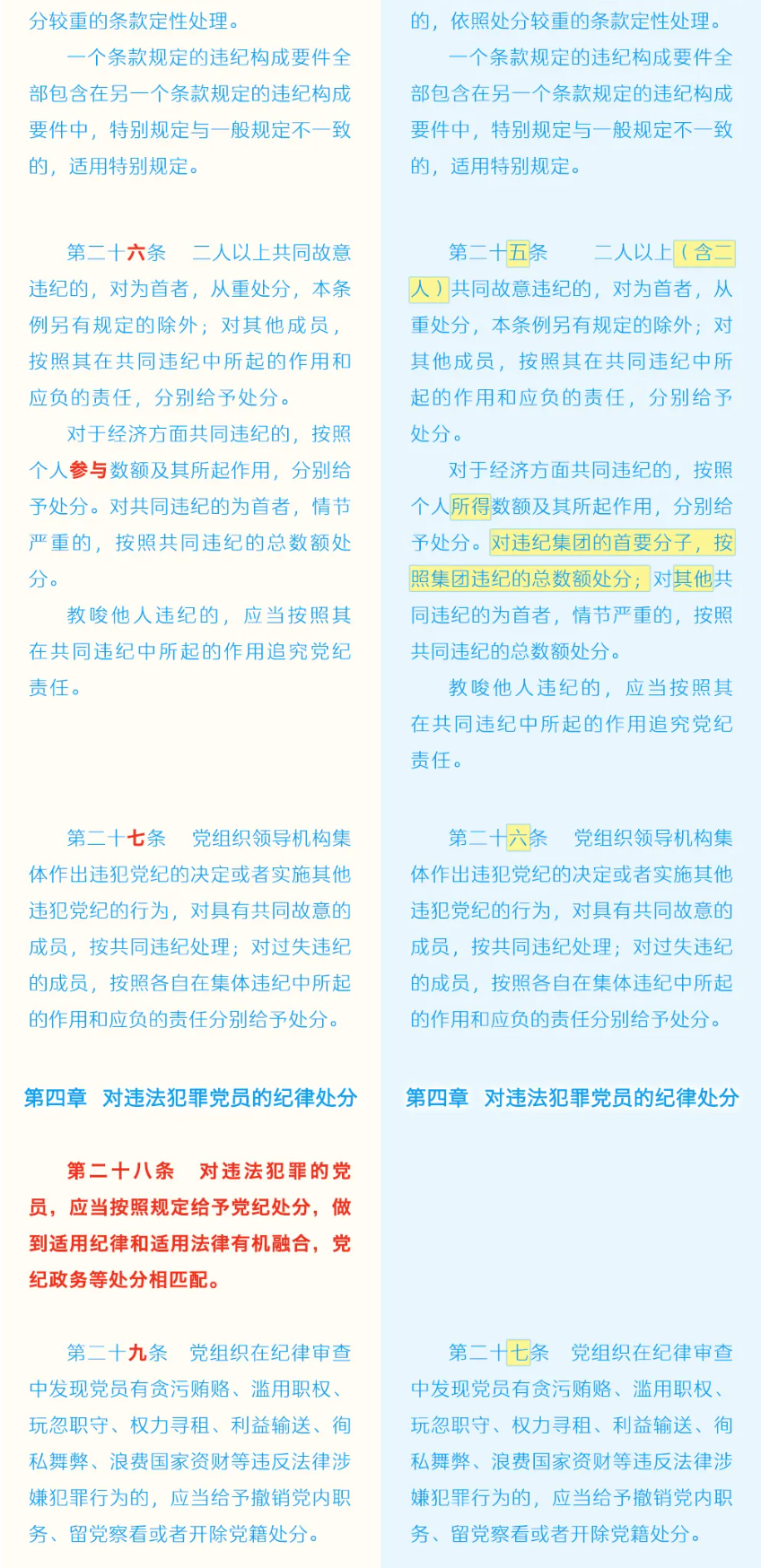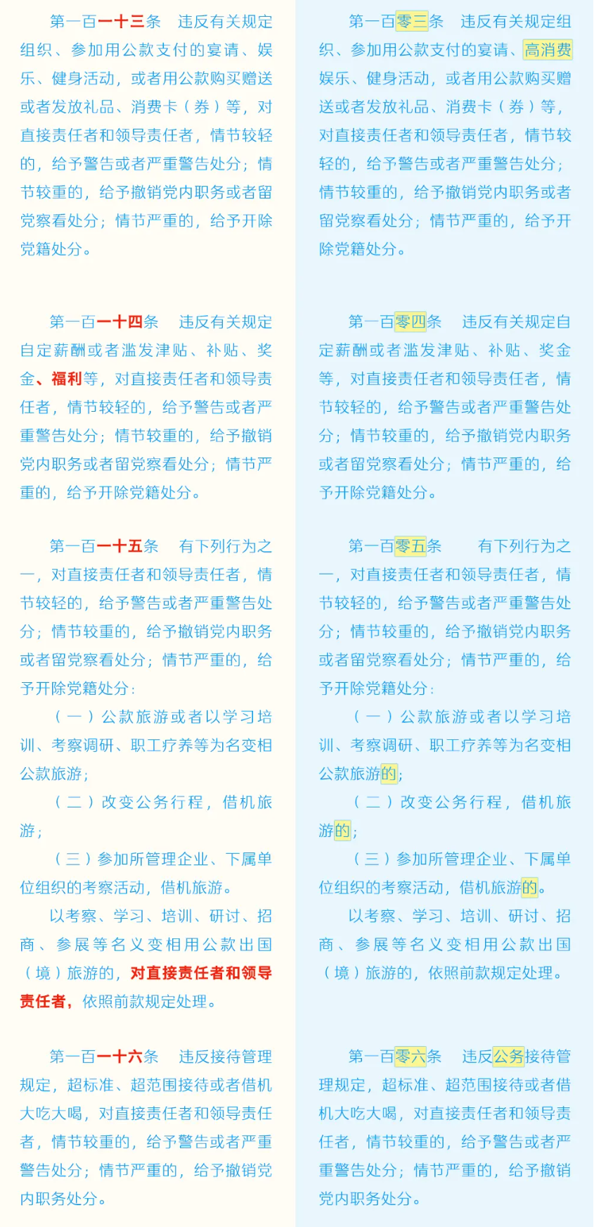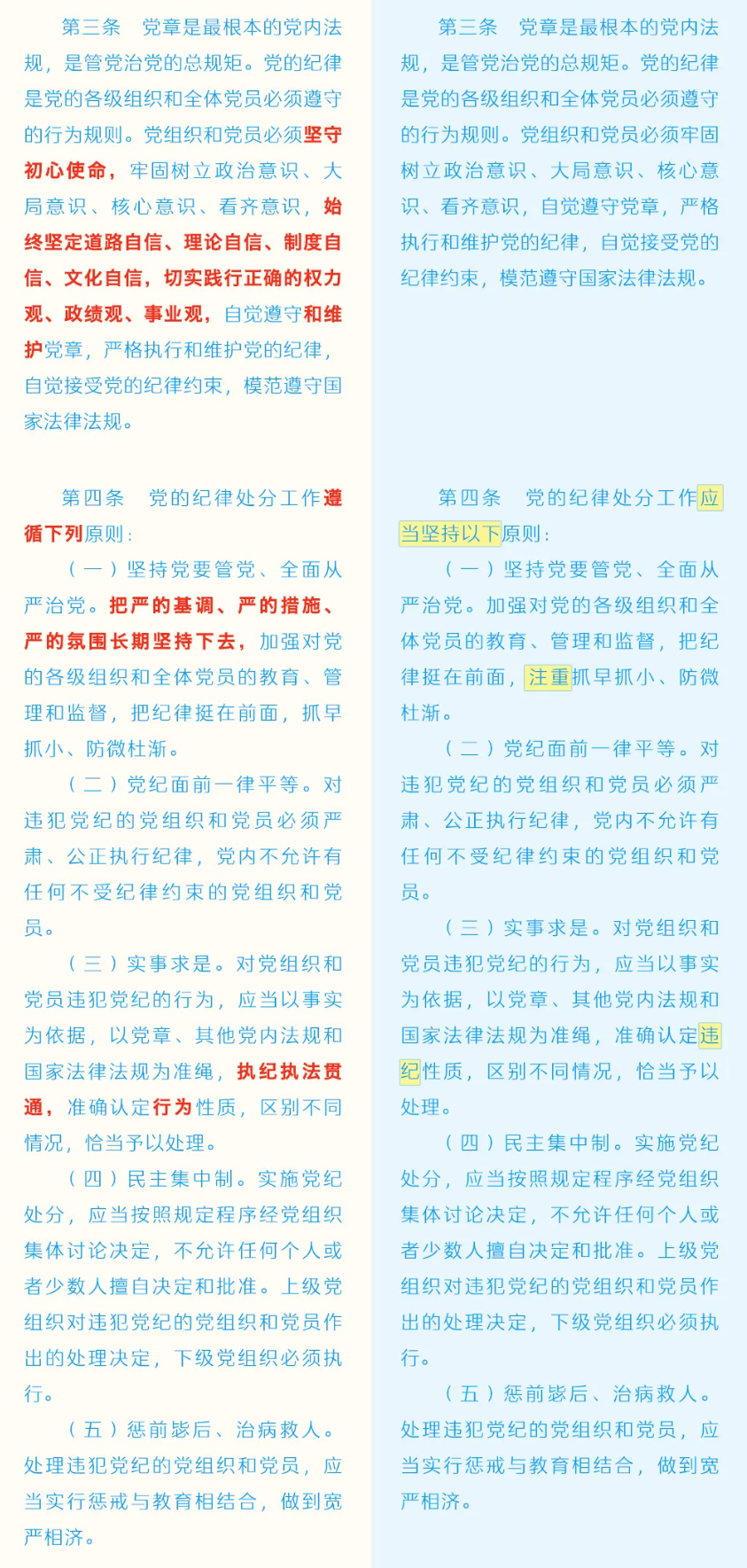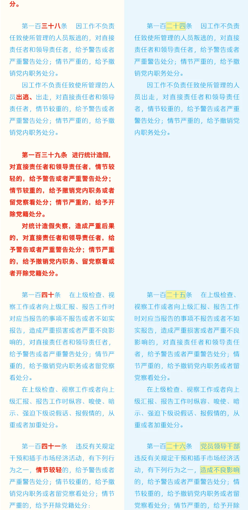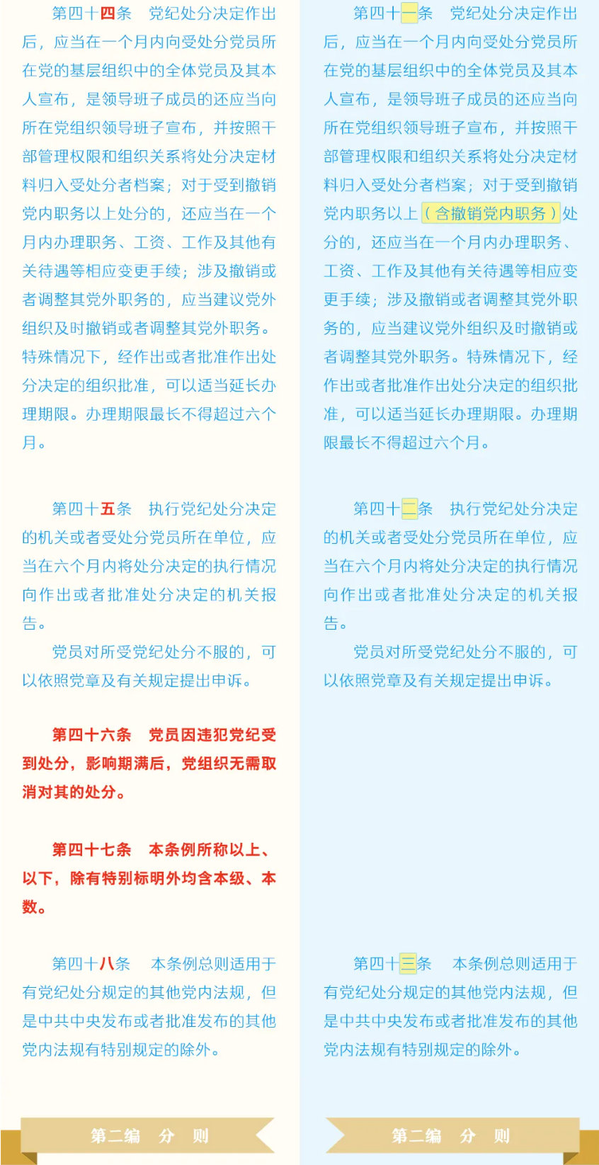 党纪学习教育第5期丨《中国共产党纪律处分条例》修订条文对照表