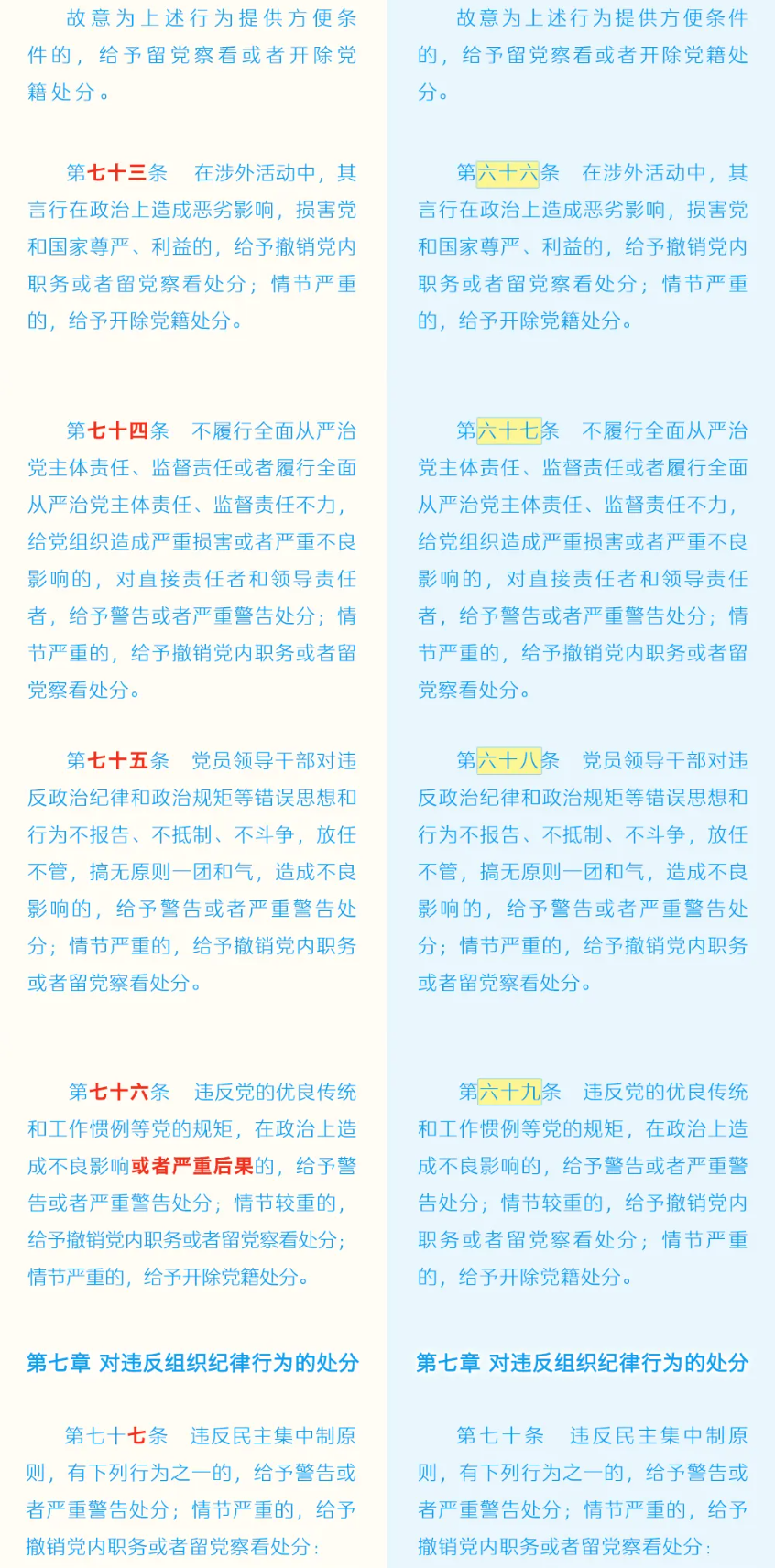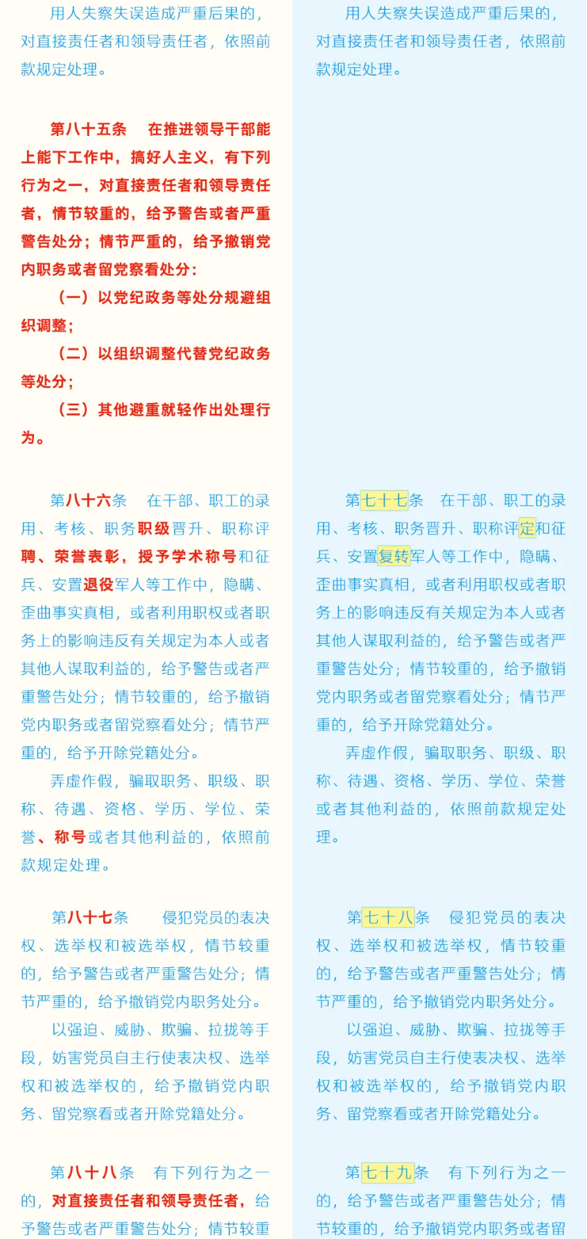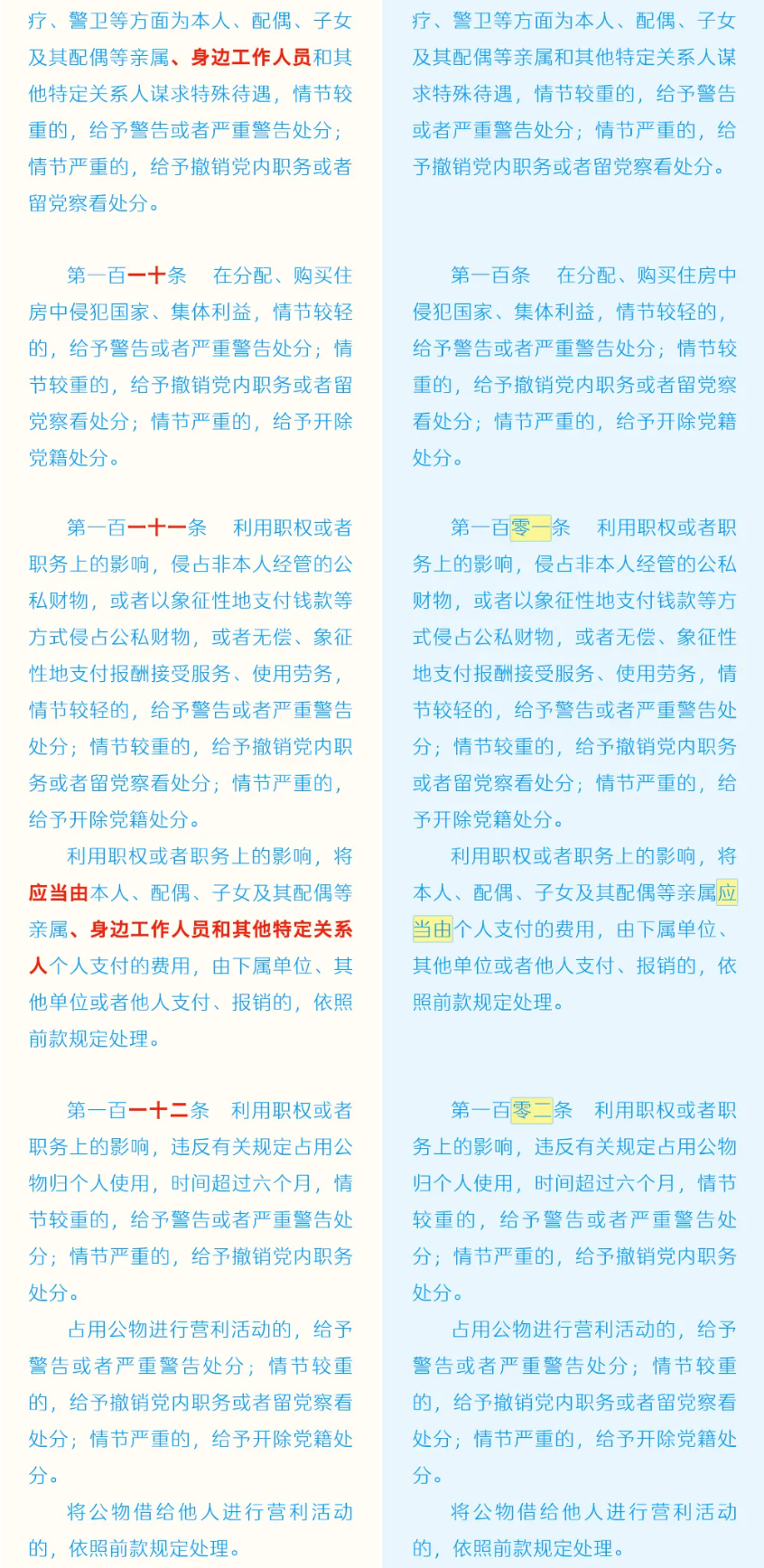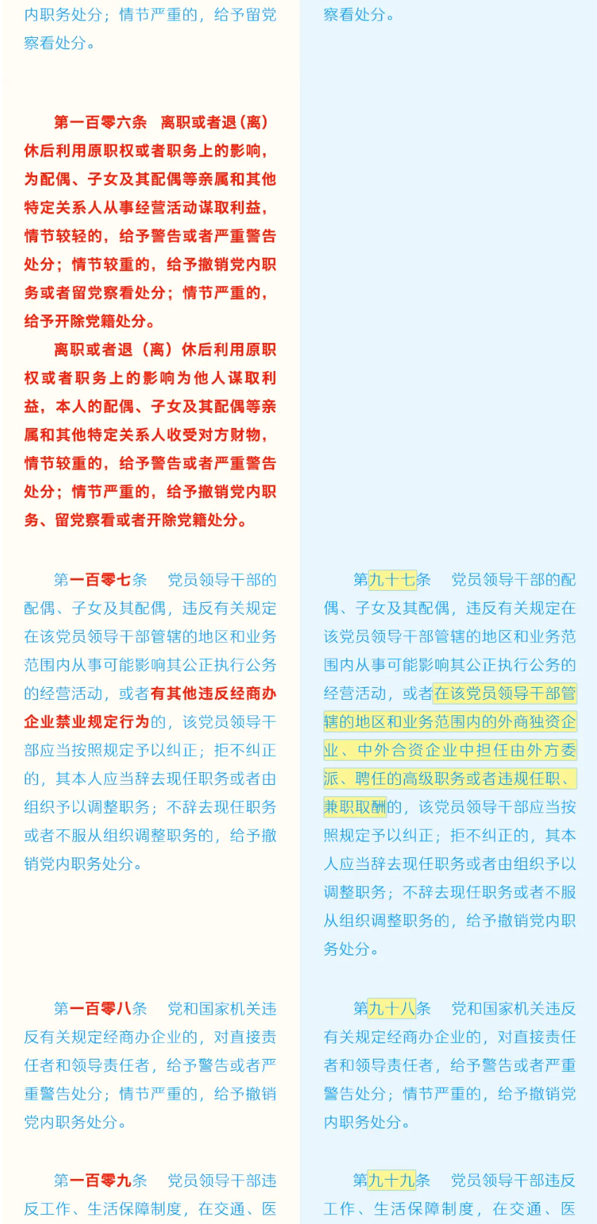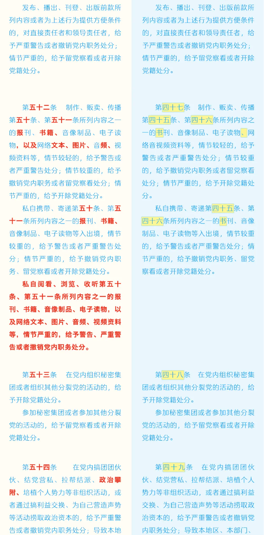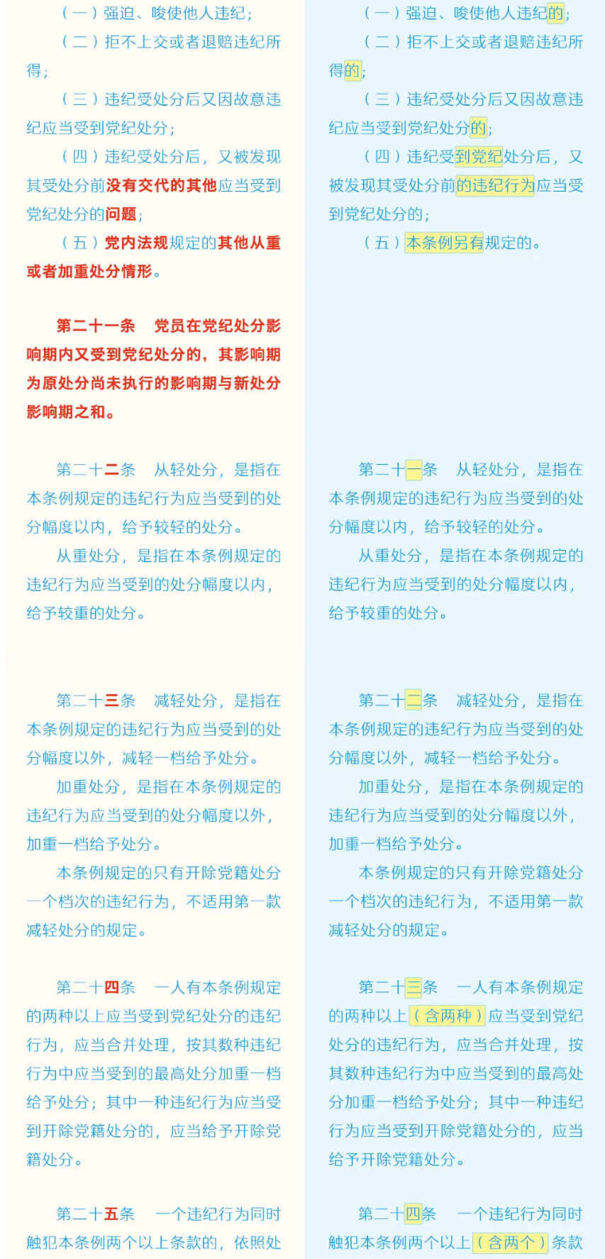 党纪学习教育第5期丨《中国共产党纪律处分条例》修订条文对照表