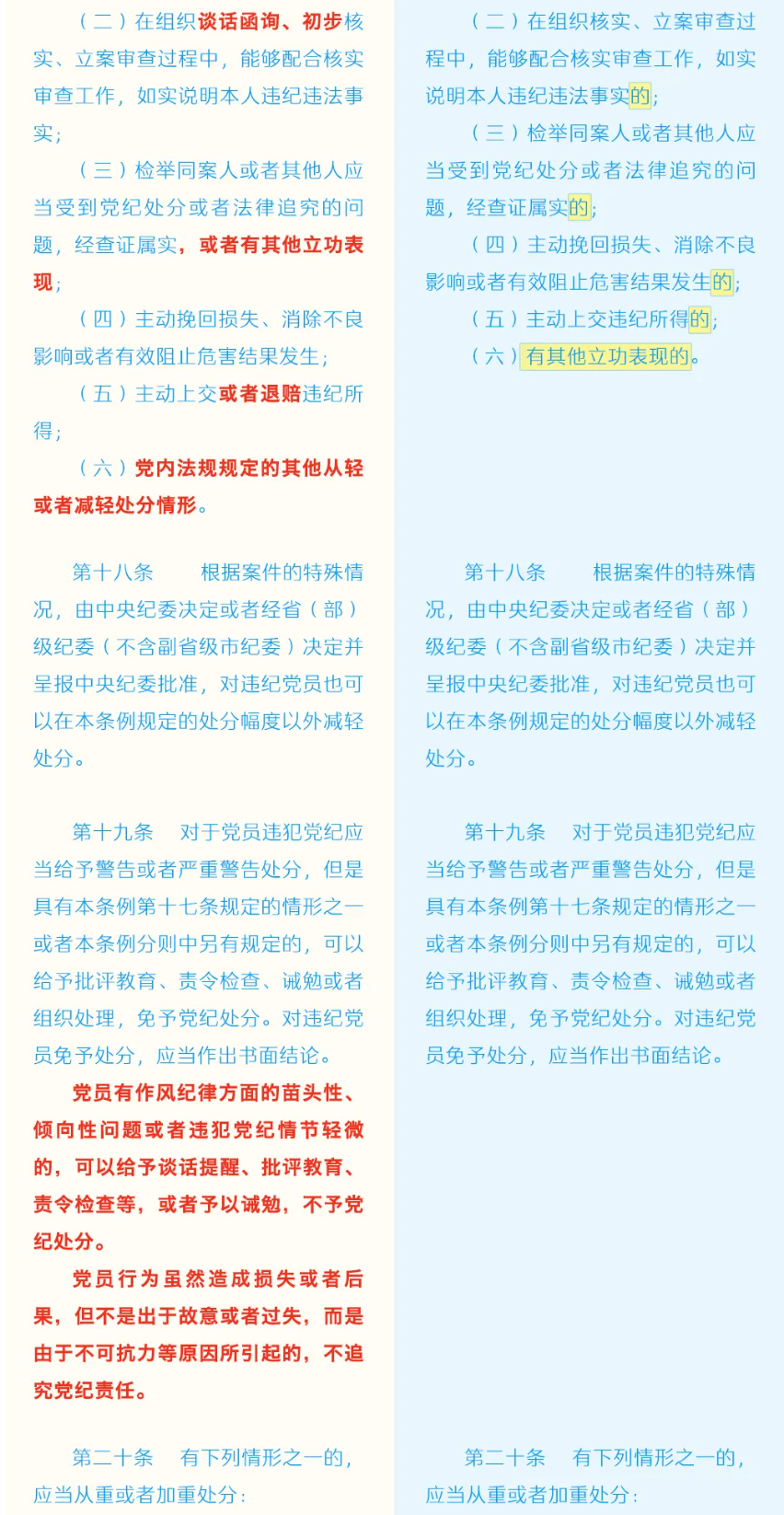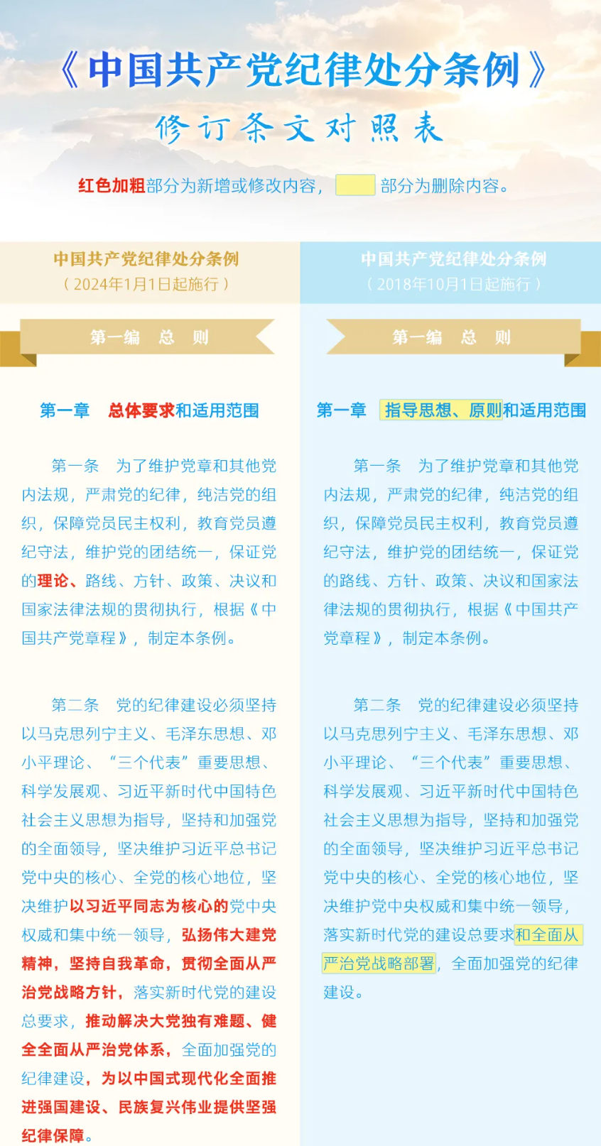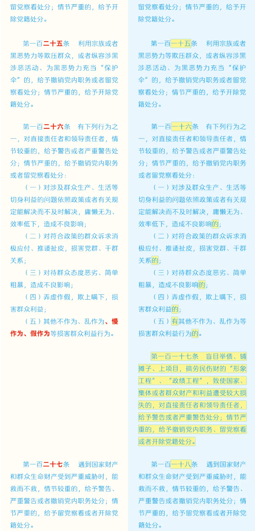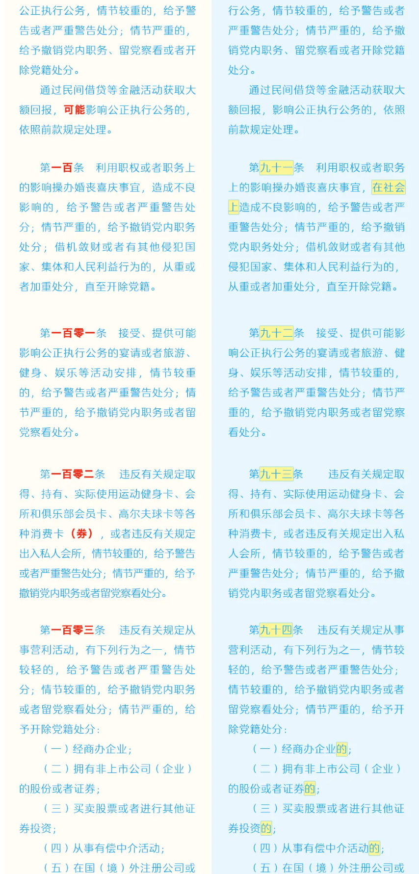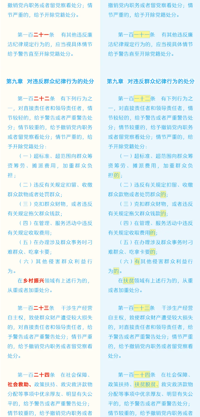 党纪学习教育第5期丨《中国共产党纪律处分条例》修订条文对照表