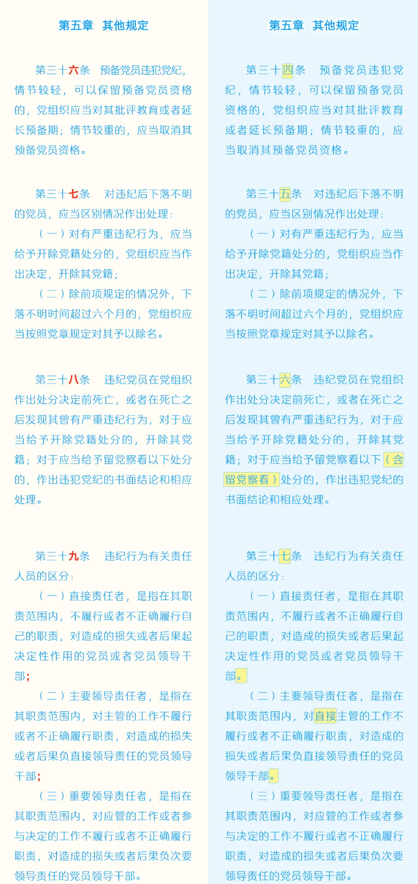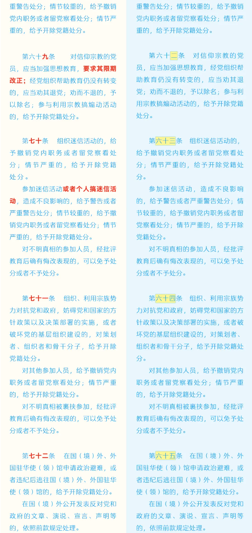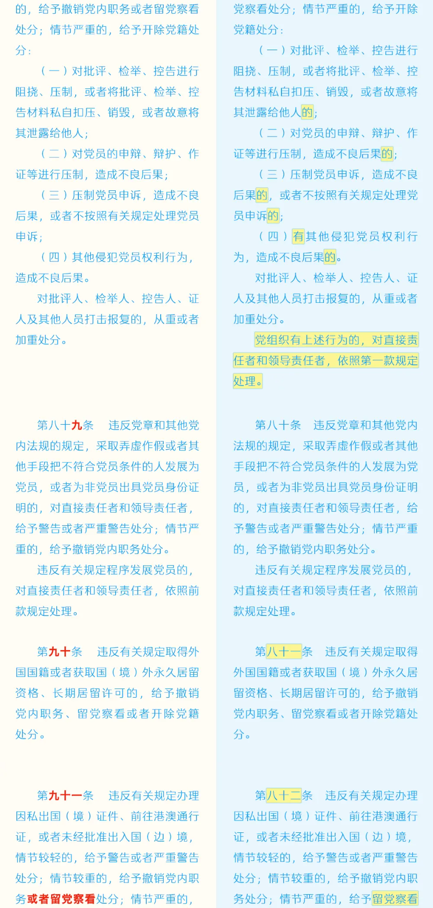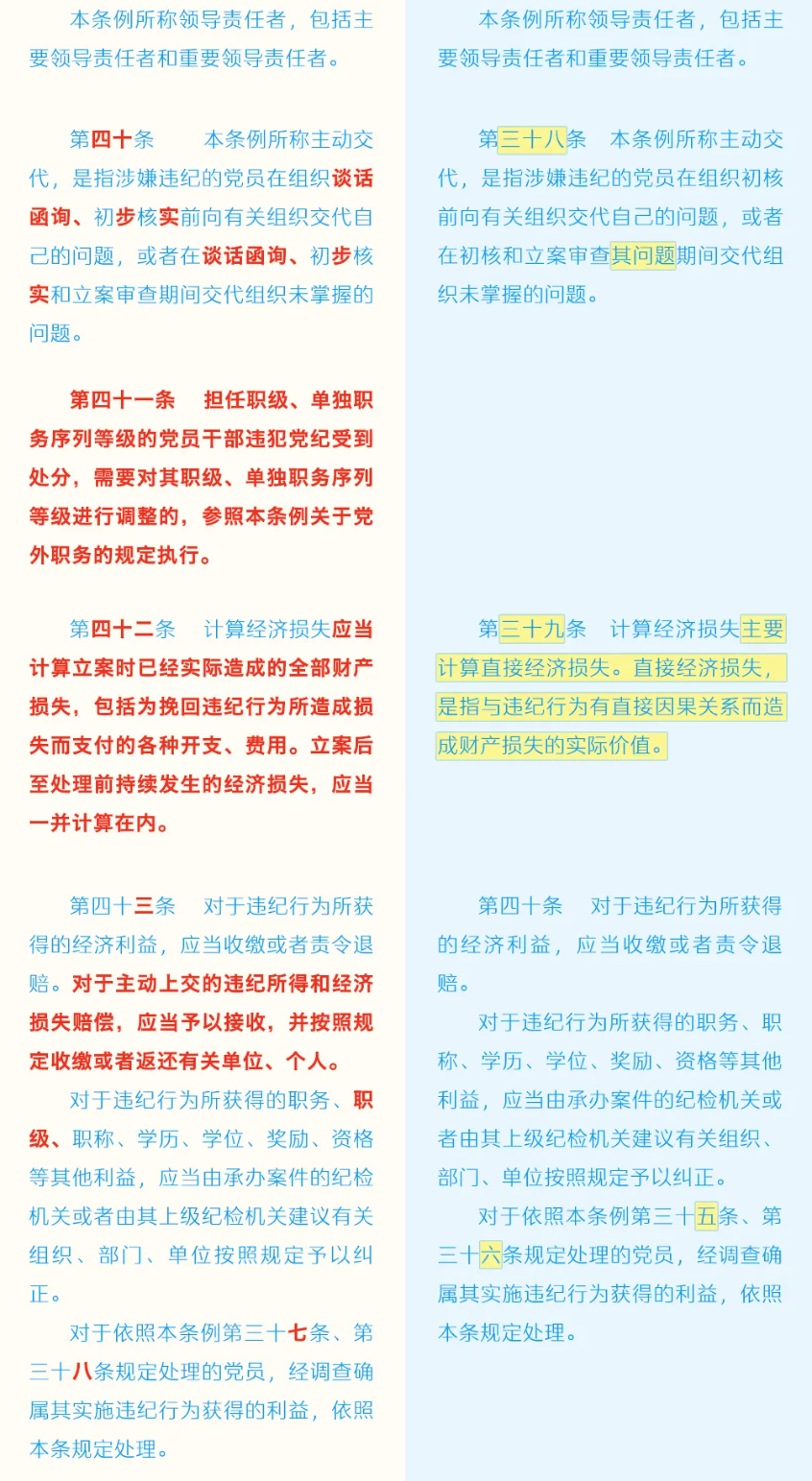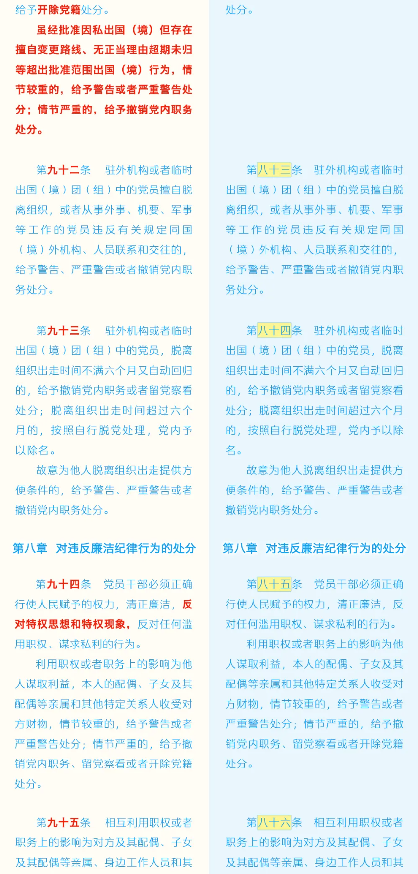 党纪学习教育第5期丨《中国共产党纪律处分条例》修订条文对照表