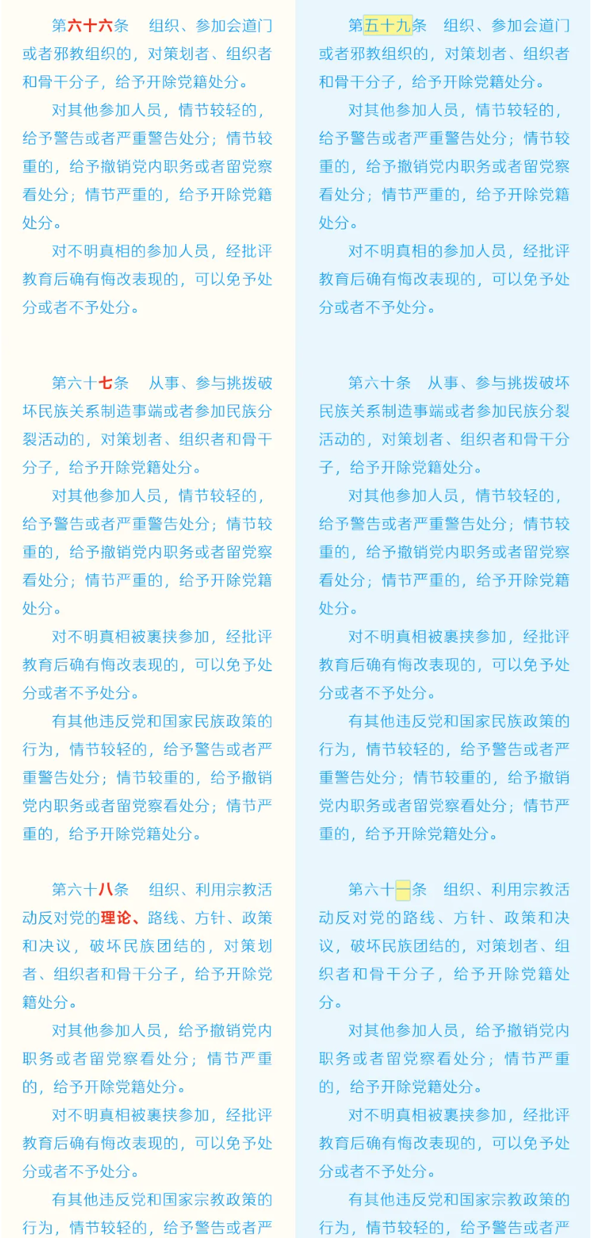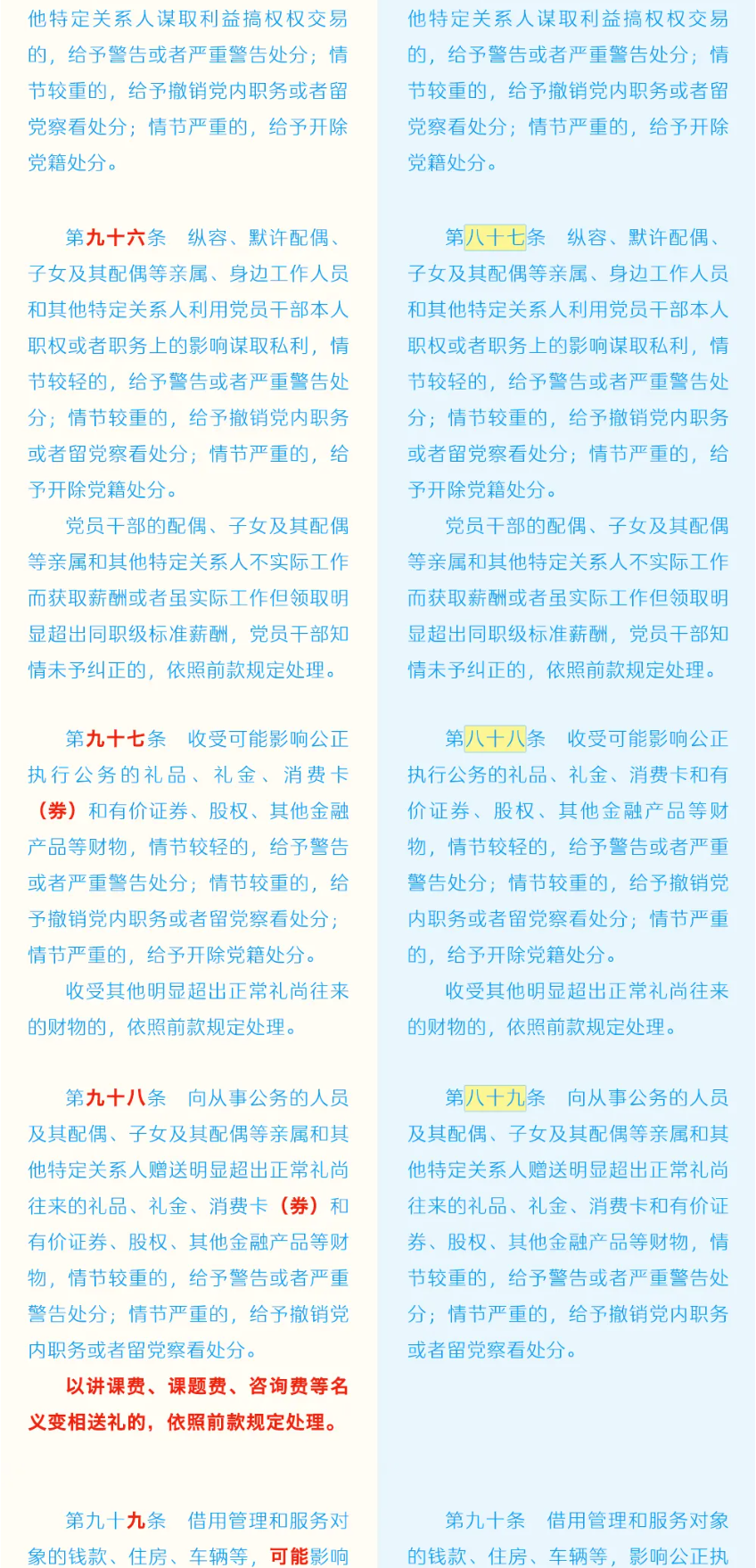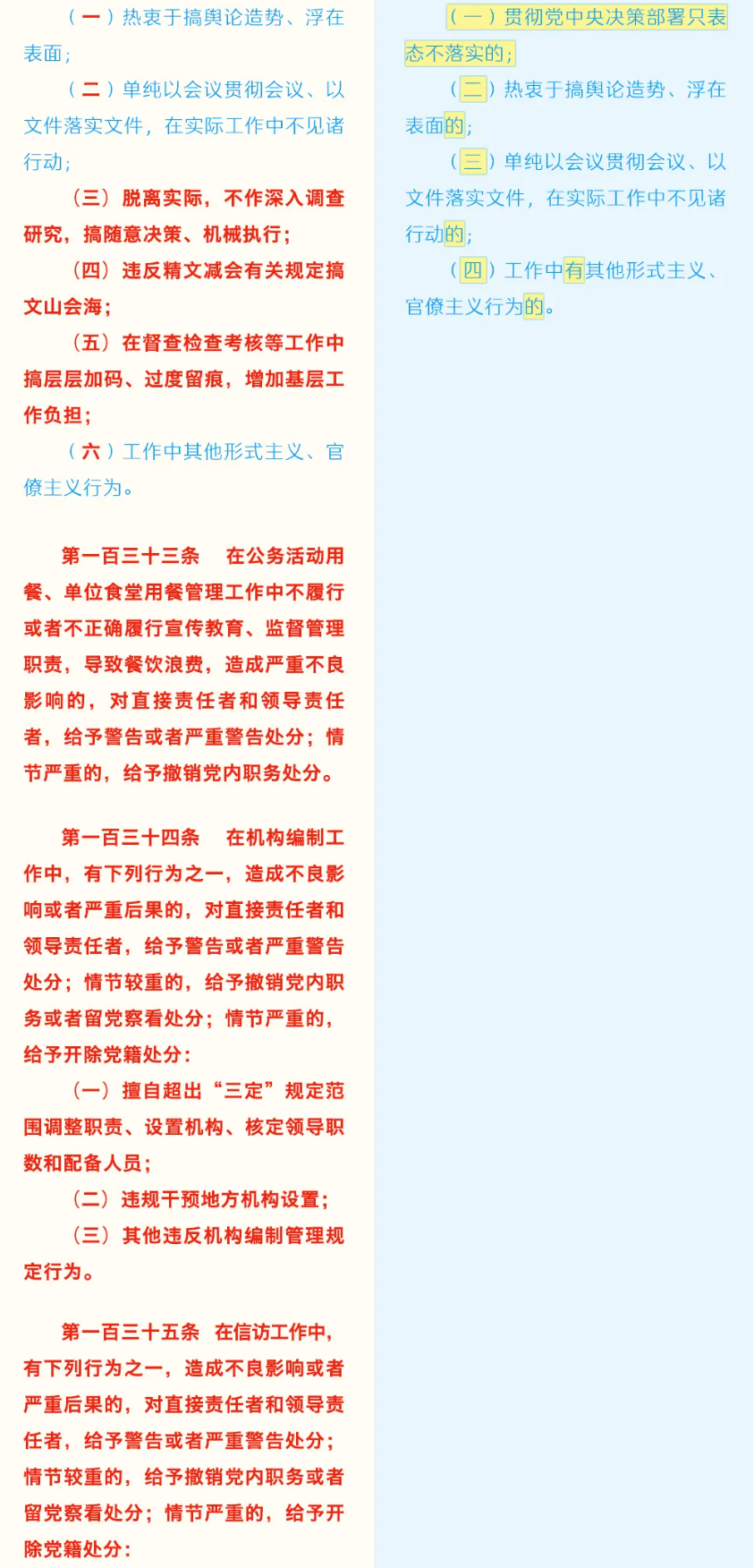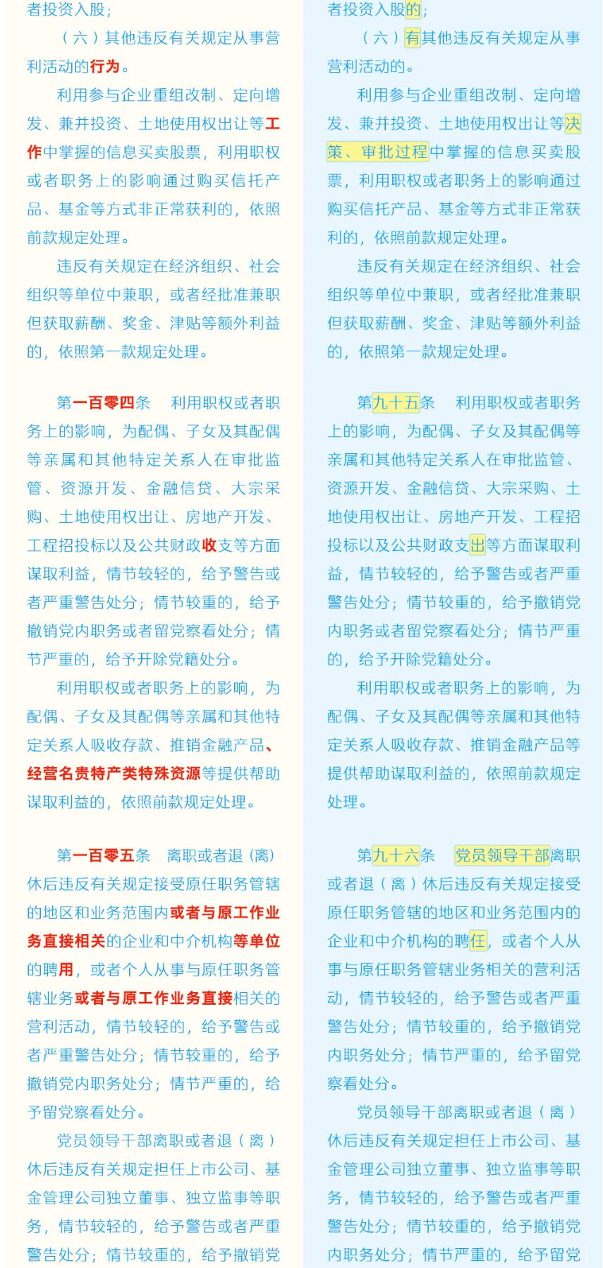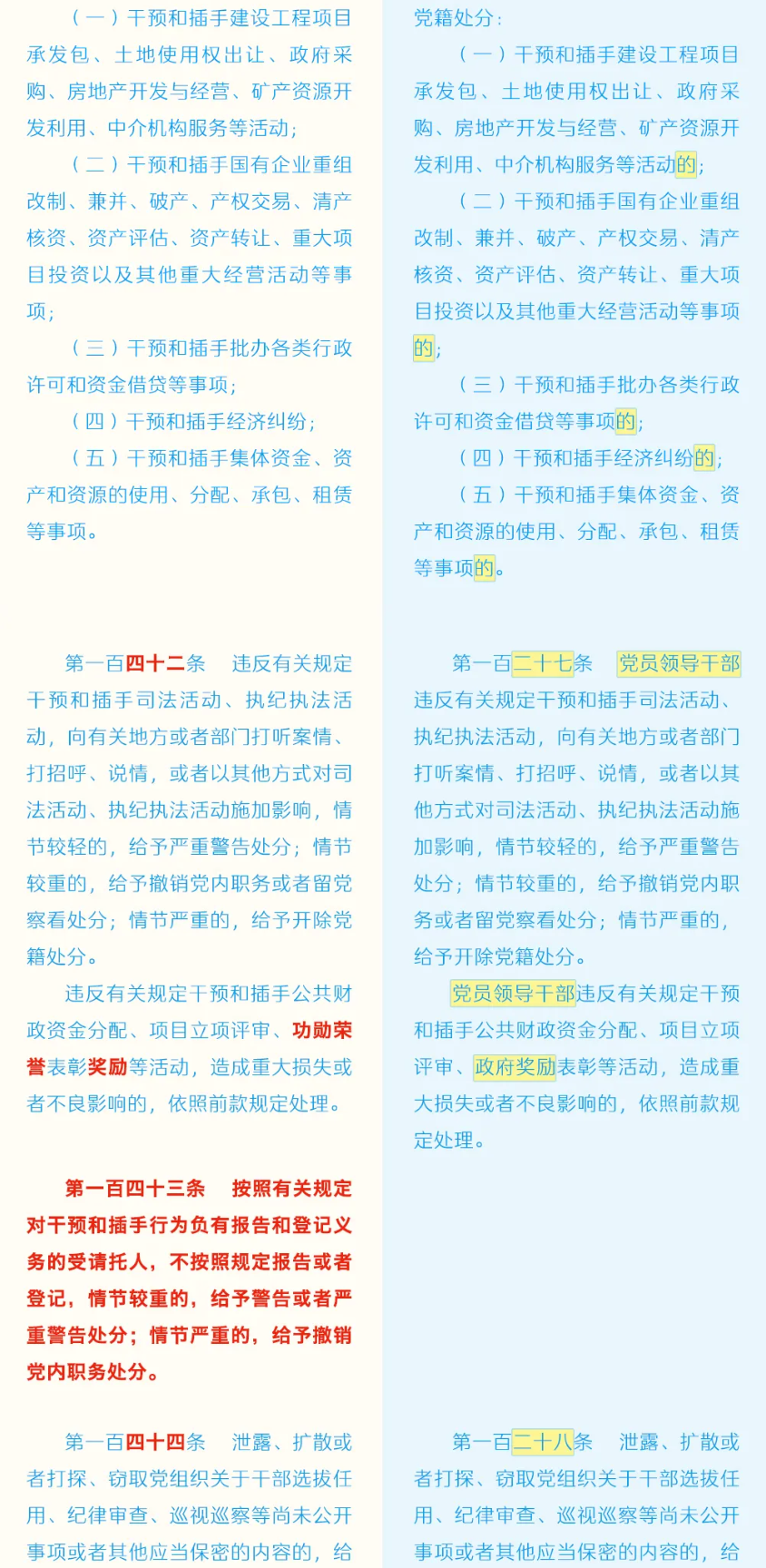党纪学习教育第5期丨《中国共产党纪律处分条例》修订条文对照表