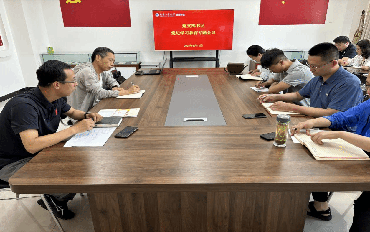 在3557会议室召开党支部书记例会暨党纪学习教育专题会议,学习贯彻习近平总书记关于党纪学习教育的重要讲话和重要指示精神,研究部署学院党纪学习教育推进工作。学院党委书记魏明侠、党委副书记魏涛以及全体师生党支部书记参加会议,会议由魏涛主持。