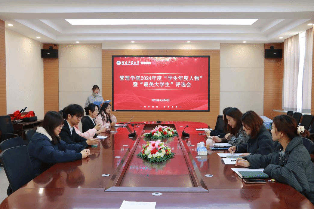 在3558会议室举办2024年度“学生年度人物”暨“最美大学生”推荐评选活动。学院学工办主任王风云、团委书记郑媛媛,2023级辅导员肖雪川、冯梅及全体参评同学参加本次推荐评选活动。