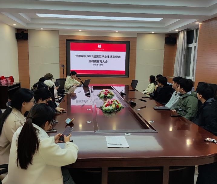 在3558召开2025届贷款毕业生还款说明暨诚信教育大会。学院学工办主任王风云、资助负责老师冯梅、资助助理及2025届贷款毕业生参加本次会议。针对部分同学的特殊情况,无法到场,本次会议采用线上线下相结合的方式。