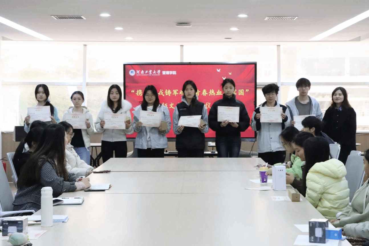 在德园一站式学生社区顺利举行“携笔从戎铸军魂,青春热血报家园”主题征文活动颁奖仪式。学院学工办主任王风云、辅导员肖雪川以及获奖的同学们参加了颁奖仪式。