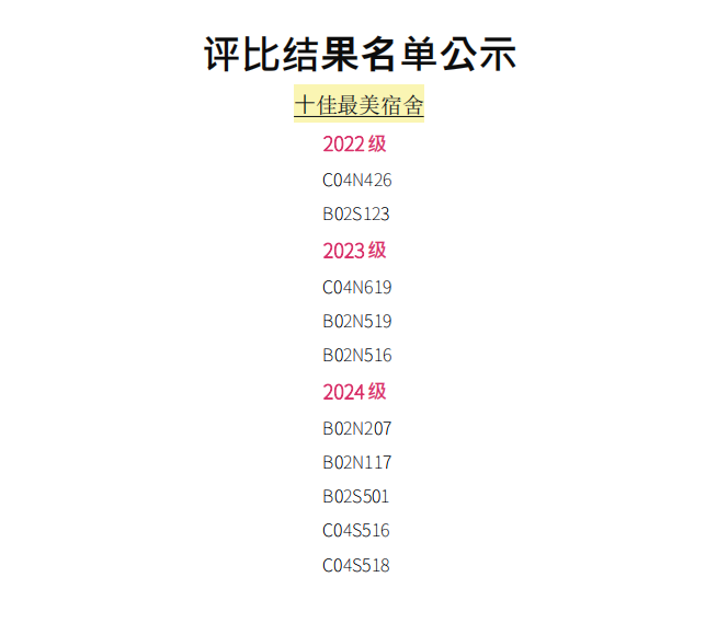 经过认真严谨、公平公正的评分合议后,本次宿舍卫生评比及安全排查活动最终评选出“十佳最美宿舍”与“十佳明星宿舍”。