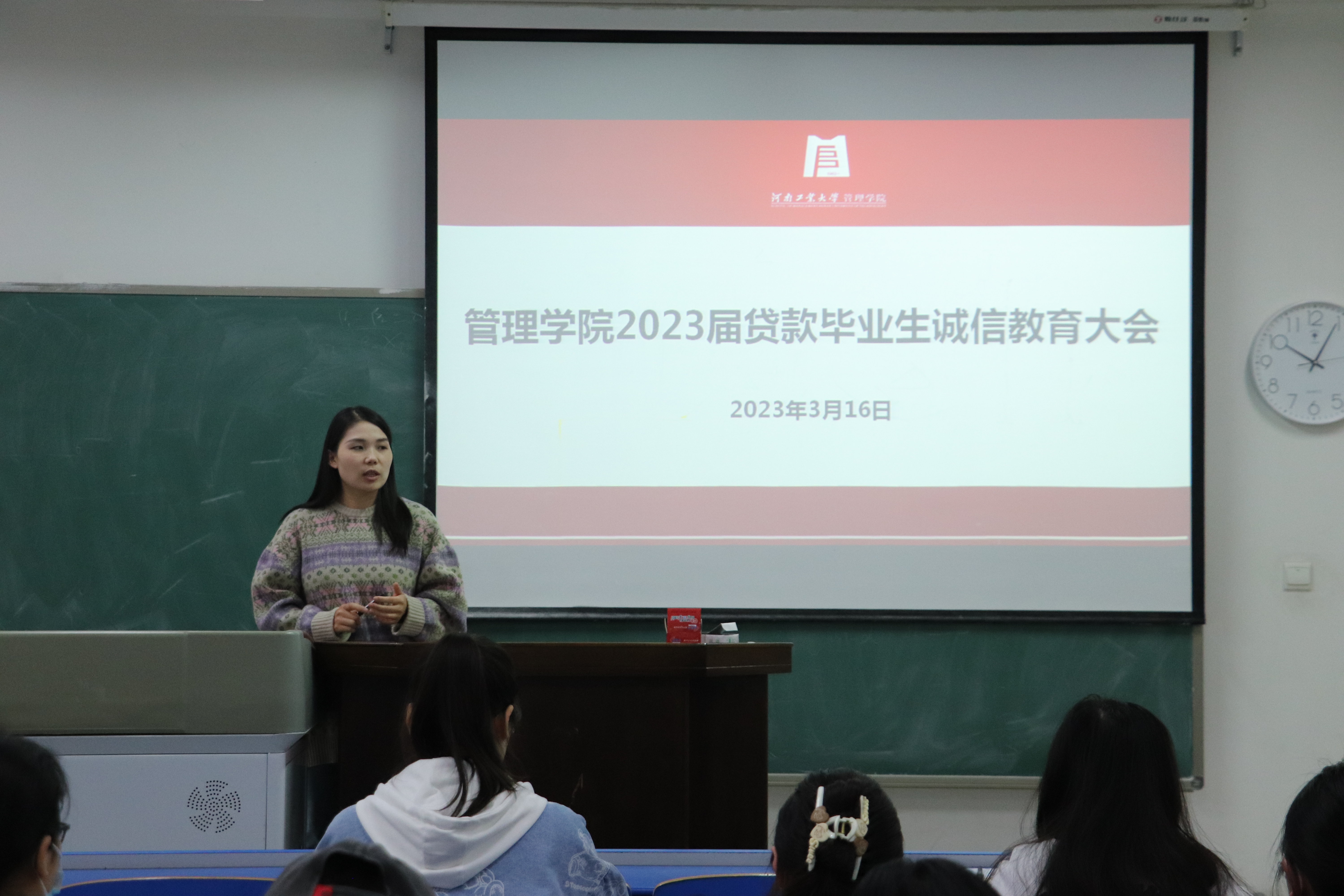 会上,王风云老师详细向贷款毕业生介绍了国家助学贷款系统和还款支付宝的操作使用方法,以及高校贷款和生源地贷款的还款流程、POS机和还款支付宝的还款办法、个人信息完善、毕业确认、百元活动、展期申请、贷款毕业手续办理等内容,并结合实际案例,向同学们进行了金融知识、征信知识和诚信意识的教育。