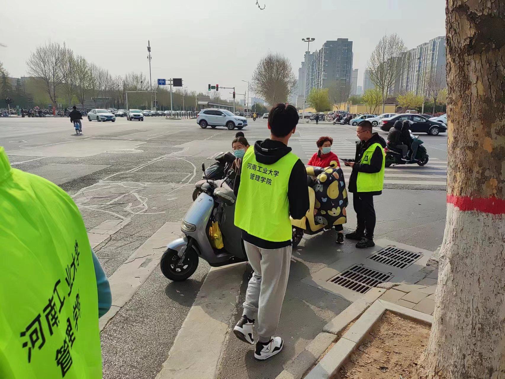 志愿者工作部为响应公安部交通管理局号召,开展“一盔一带,安全常在”活动。通过发放交通安全宣传单,倡导过往骑乘人员佩戴头盔,系好安全带,更好地帮助维持交通秩序,守护交通安全,有效规范出行,切实提高文明出行意识,营造文明和谐的交通氛围。