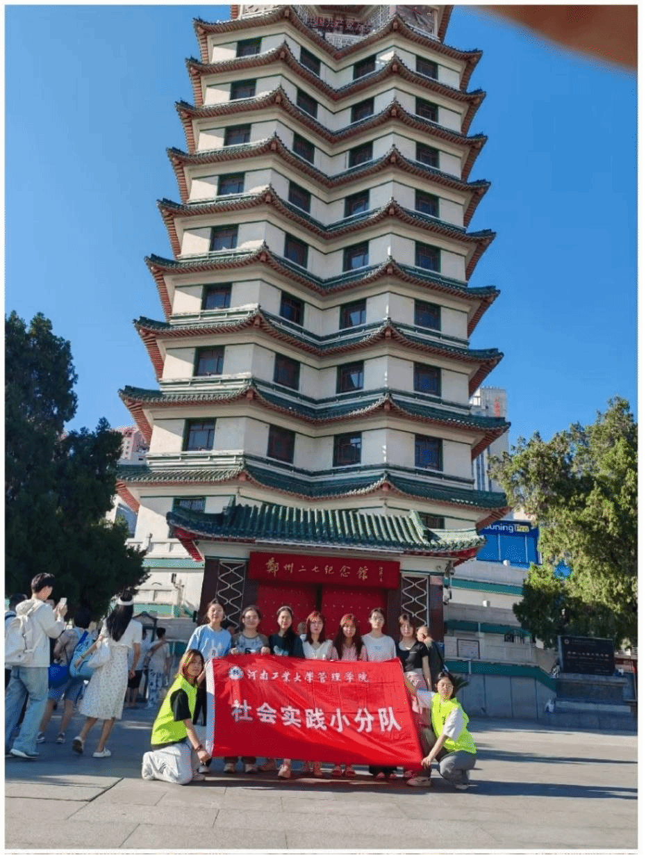 7月4日,实践小队成员一行首先来到郑州标志性建筑——二七纪念塔。二七纪念塔是为纪念1923年京汉铁路工人大罢工而建,象征着工人阶级不屈不挠的斗争精神。