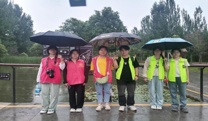 在景区门口完成了对路人的采访以后,在红旗渠纪念馆入口处偶遇了同样来进行社会实践活动的周口师范学院的同学们,简单交谈后得知大家都是为了来聆听时代的回响,在雨中匆匆进行了合影留念,希望下次见面我们都能成为更优秀的彼此。