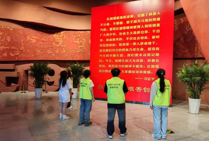 在队长的带领下,团队成员仔细观看、认真聆听,仿佛穿越时空,回到了那个激情燃烧的年代。仿佛看到了林州人民为了改变恶劣的缺水条件,党员干部身先士卒,群众团结一心,手拿凿具开山修渠的壮丽场景;感受到了当年修渠者不畏艰难、艰苦奋斗的精神风貌。