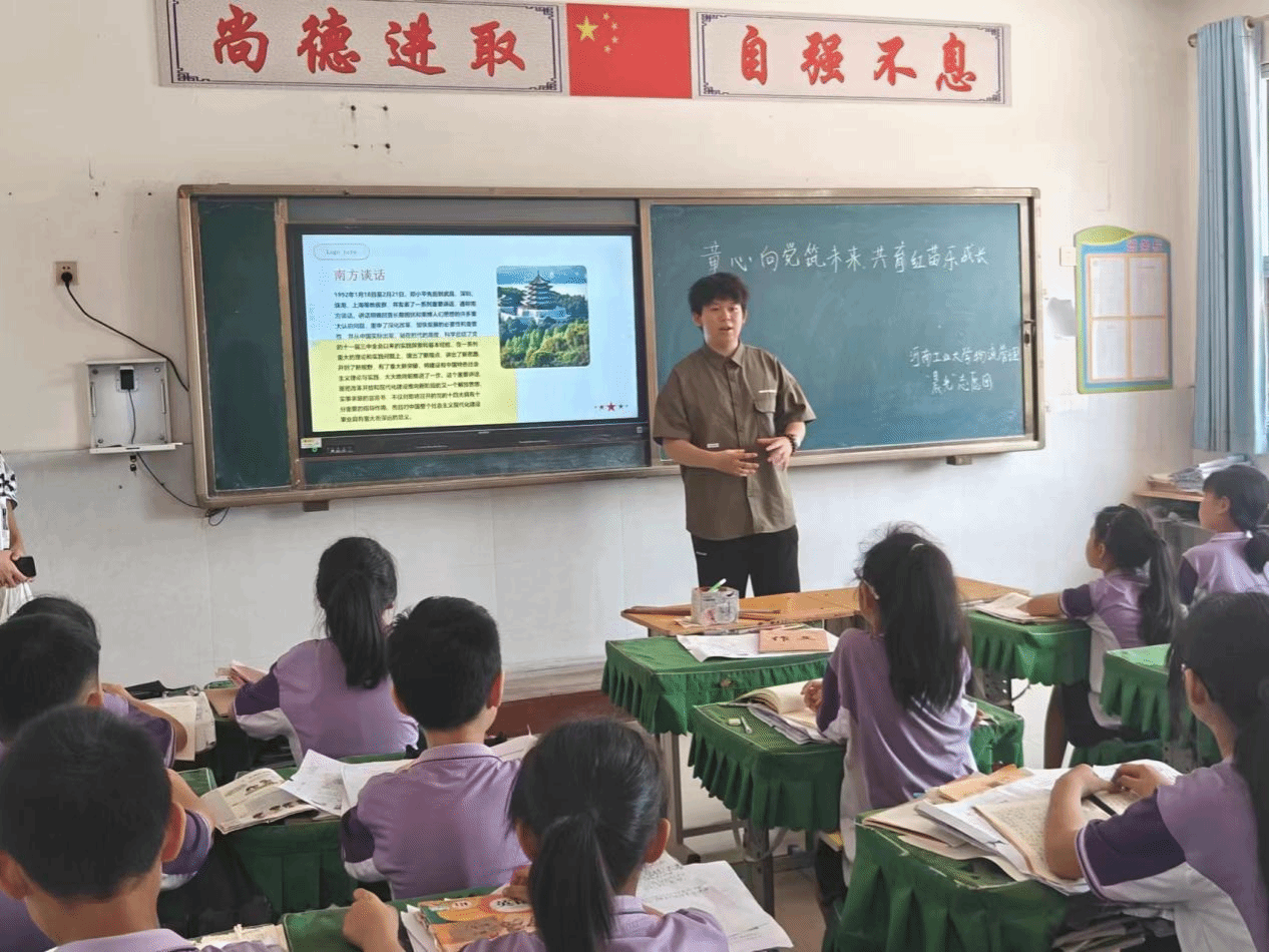 当实践团的成员走进教室,他们在课堂上讲述了中国共产党奋斗的百年历程,让学生们更加了解中国共产党。同时也给孩子们拓展了书本上以外的知识,帮助孩子们学习到了更多的知识。给孩子们讲述了自己在生活中遇到的趣事,所见所闻虽然不足以丰富,但在有限能力内努力打开孩子们的一片新天地。与此同时户外活动也是必不可少,大孩子和小孩子一起在操场上奔跑,跳绳、踢球、打球之类的运动,不仅让孩子们做到了劳逸结合,也使团队成员越来越放松自如。