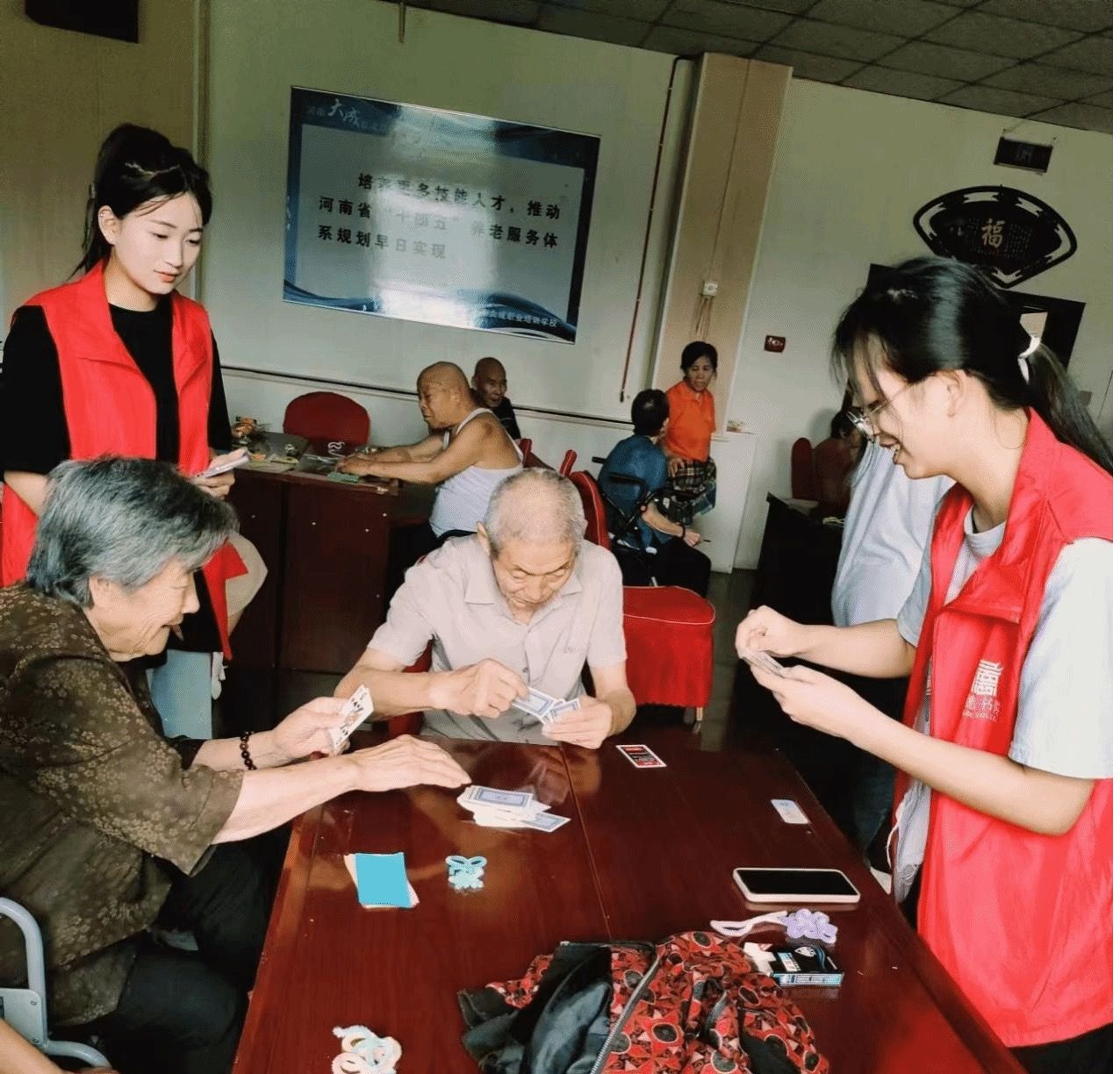 的学生化身志愿者,带着满满的爱心和热情走进了颐和养老院,他们用自己的行动为老人们带来了关怀和温暖,让养老院充满了欢声笑语。