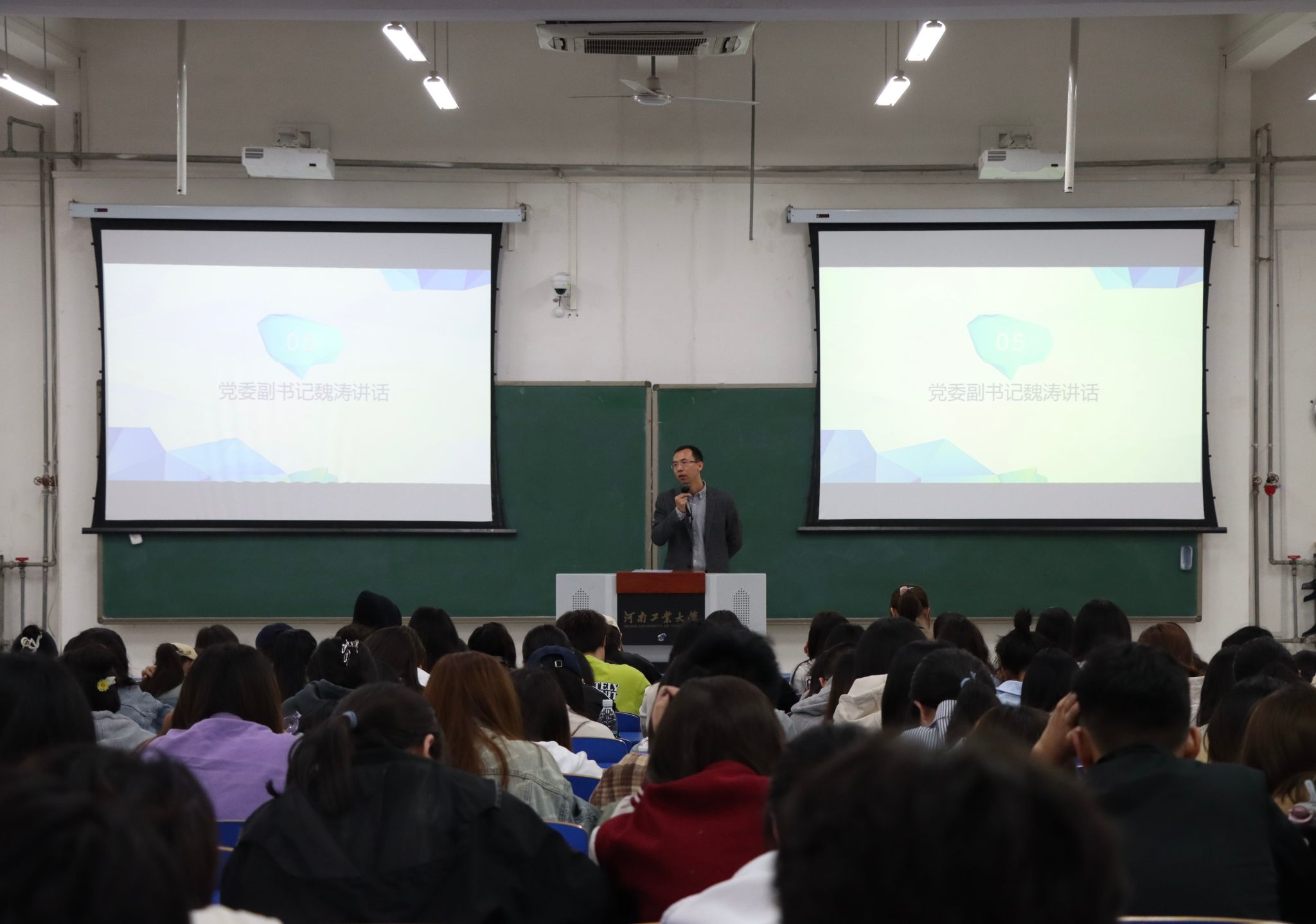 为进一步加强学风建设,全面调动2021级学生的考研积极性,明确考研目标、坚定考研信心、提升考研竞争力,4月10日下午,亚洲无码 在3135教室召开2021级考研动员大会。亚洲无码 党委副书记魏涛、MBA教育中心招生办主任王高峰及2021级全体学生参加本次会议。会议由2021级辅导员方园主持。