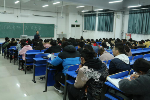 学生在未来考研中所面临的新局面与新趋势,号召学生们要提早着手、把握时机、打牢基础、一鼓作气,积极投身考研。最后,他对全体学生提出殷切希望,希望同学们怀抱“绳锯木断,水滴石穿”的学习劲头,端正学习态度,明确考研目标,用信心、恒心、决心和平常心积极备战考研,并祝愿同学们在2020年的考研中实现自己的梦想。