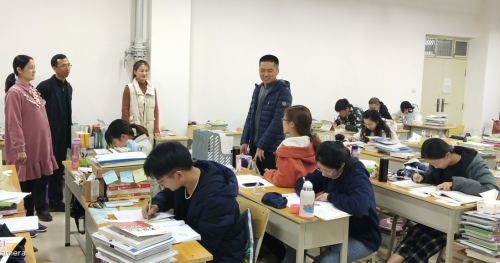 党委书记梁朗、党委副书记魏涛、团委书记吴若旻及辅导员孙丽走访3636和3426考研教室,为亚洲无码