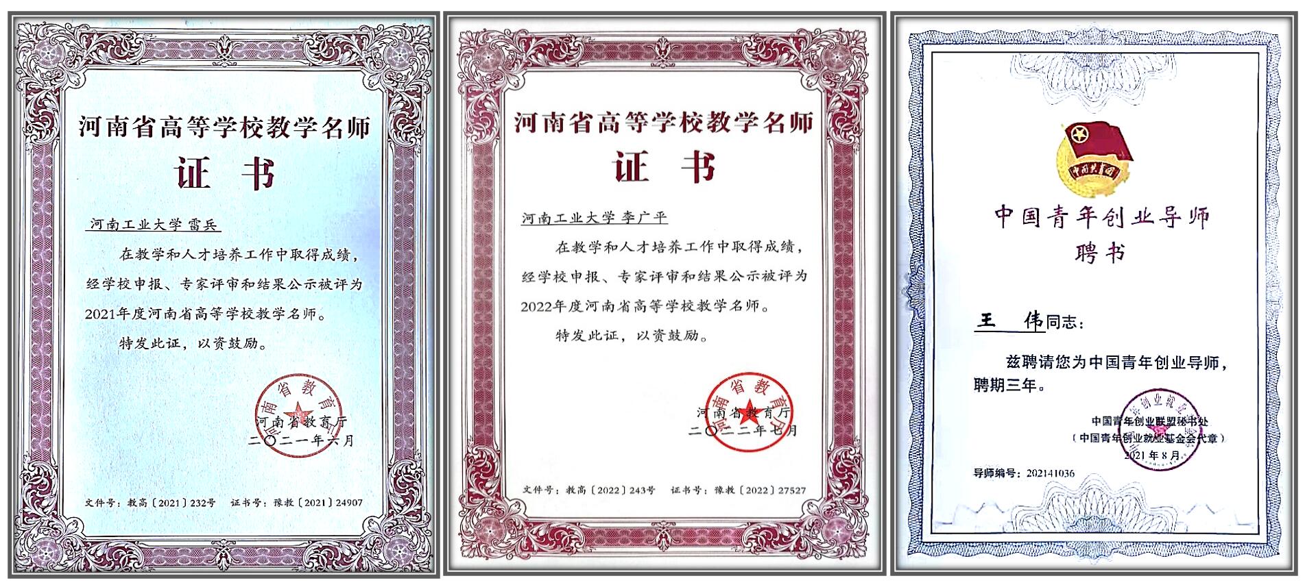 电子商务系、物流管理系、会计系为河南省优秀基层教学组织,电子商务为河南省教学团队,电子商务与现代物流管理为河南省本科高校黄大年式教师团队,粮食现代物流管理、大数据与管理决策、数字经济与技术创新管理为河南省高校哲学社会科学创新团队。