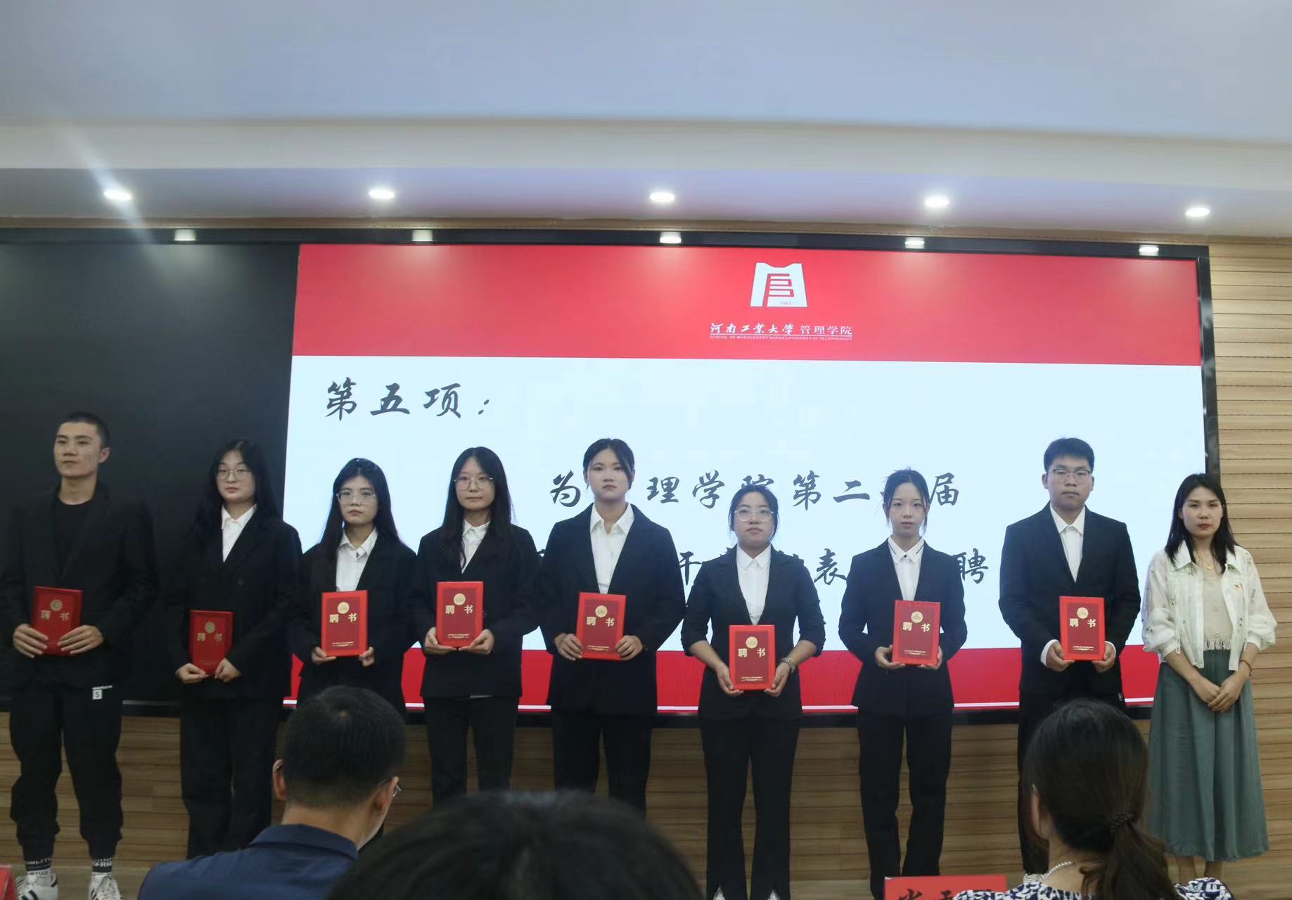 随后,学院领导老师向主要学生干部颁发聘用证书。第二十届团委学生会执行主席张广代表新一届团委学生会发言,对下一步工作做出规划和设想。