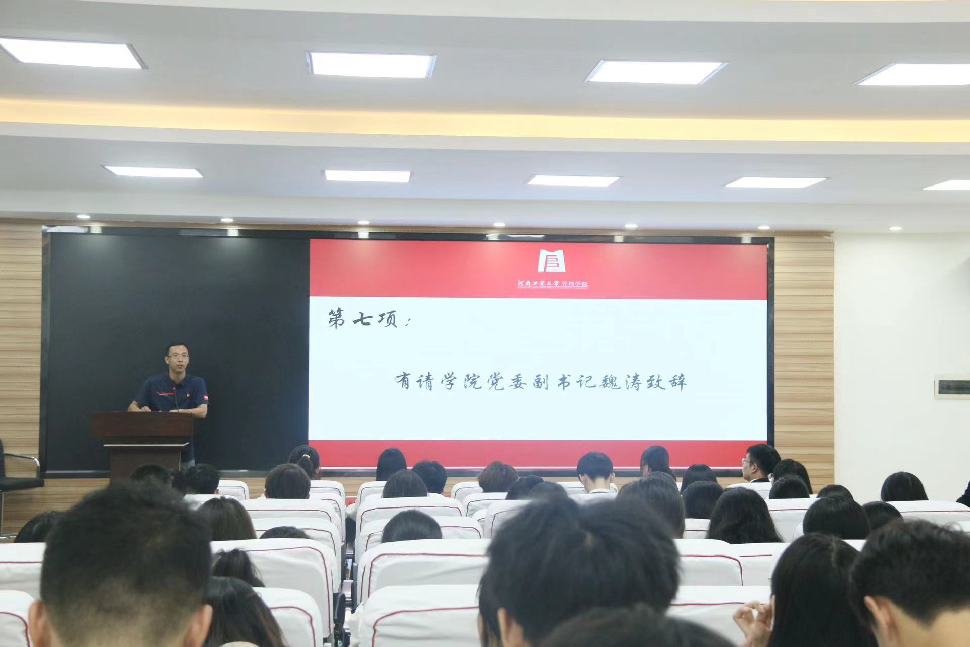在3428会议室召开学院第二十届团委学生会成立大会。院党委副书记魏涛、团委副书记郑媛媛、全体辅导员及第十九届团委学生会全体成员参加此次会议。会议由学生团委副书记杨宇泽主持。